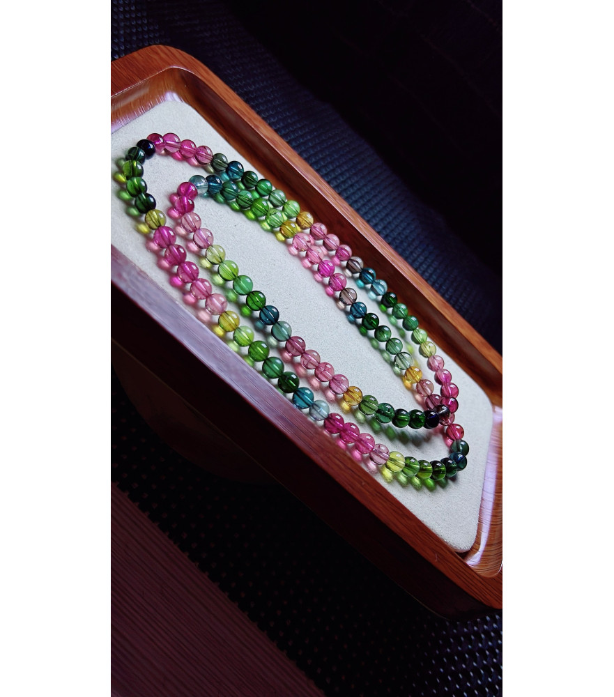 Tags: 101F13 exquisite high-quality rainbow tourmaline three circle bracelet, size about 5.5mm