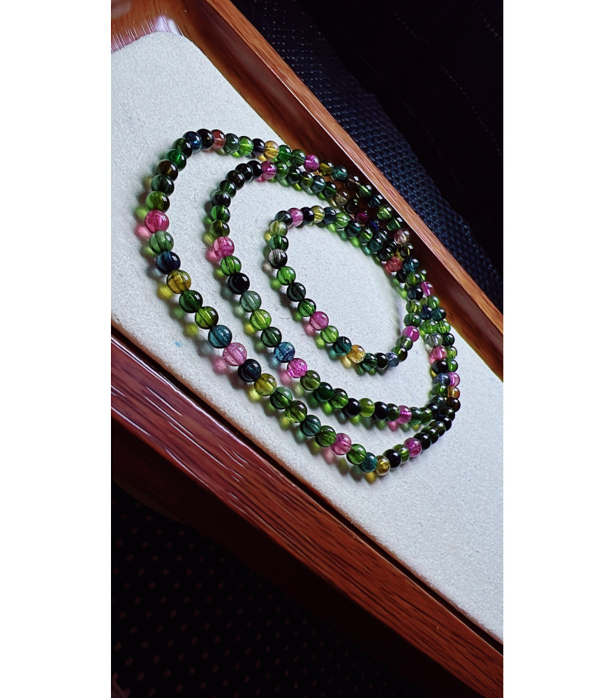 101F8 exquisite black sugar tourmaline three circle bracelet, size about 4mm, weight