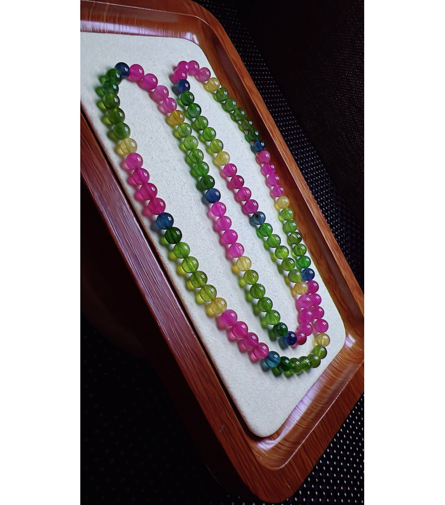 103F1 exquisite rainbow tourmaline three circle bracelet, size about 5.5mm, weight 26.2 grams, crystal transparent, fresh and smooth color, natural color matching, suitable for women to wear in various occasions