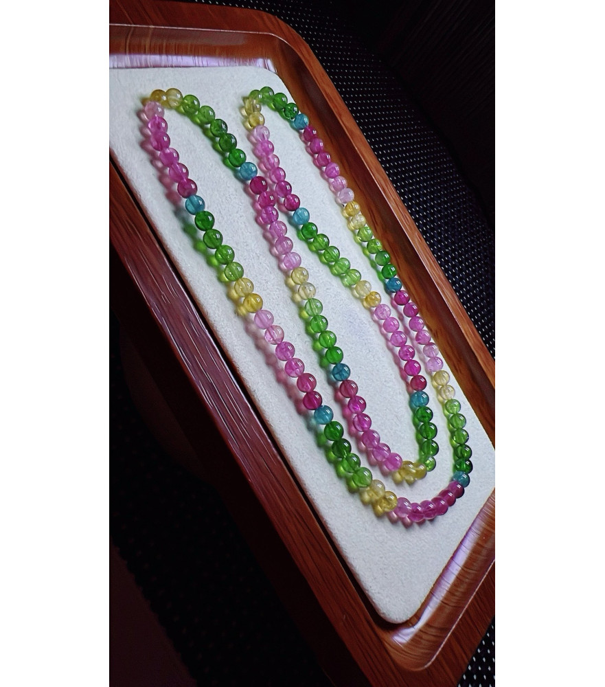 103F6 exquisite rainbow tourmaline three circle bracelet, size about 4.7mm, weight 19.5g, crystal transparent, fresh and smooth color, natural color matching, suitable for women to wear in various occasions