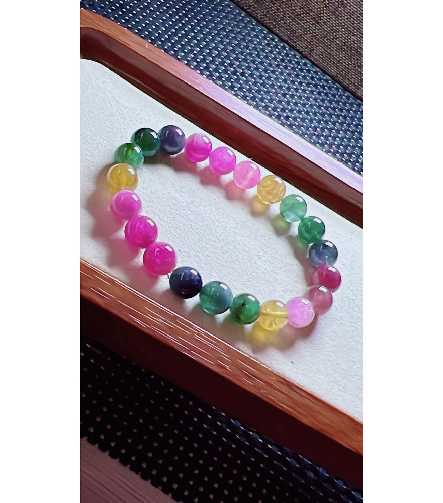 Tags: 119F13 exquisite rainbow tourmaline bracelet, size about 19mm, weight 25.3 grams, crystal