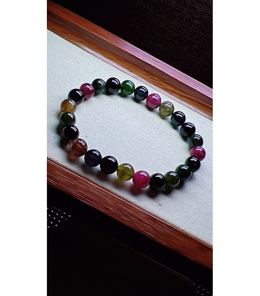 120F10 exquisite old mineral black sugar tourmaline bracelet, specification about 7.5mm, weight 16.9g, crystal transparency, fresh and smooth color, natural color matching, suitable for women to wear in various occasions