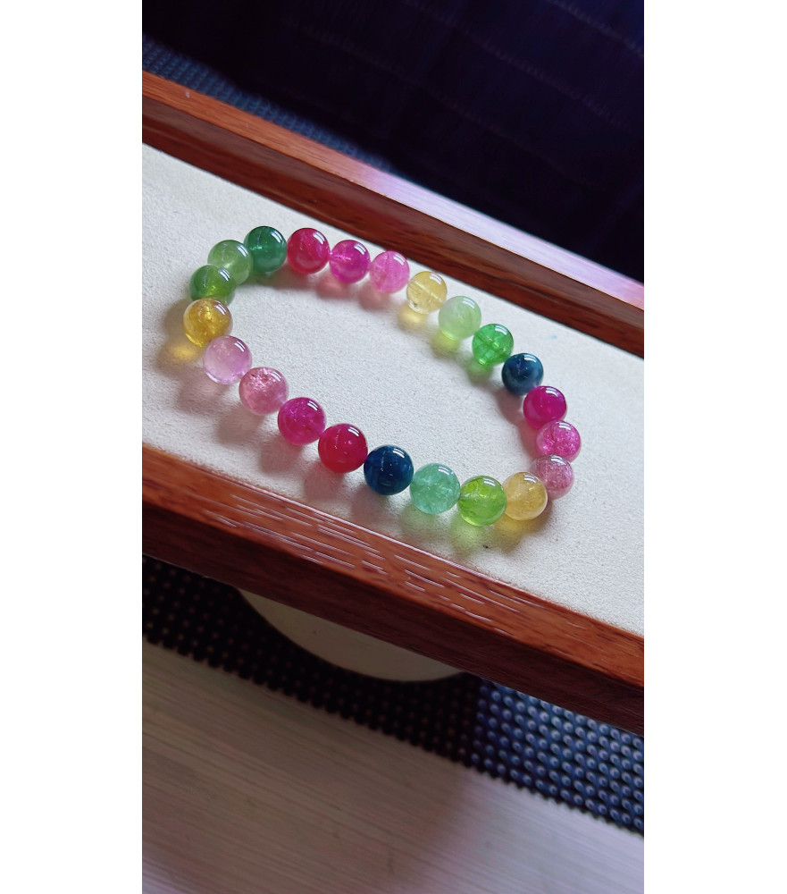 1216F12 Brilliant Rainbow Tourmaline Bracelet, size approximately 8.5mm, weight 22.4g, crystal transparent, fresh and smooth color, natural color matching, suitable for women to wear in various occasions