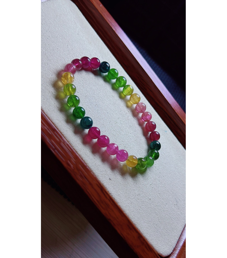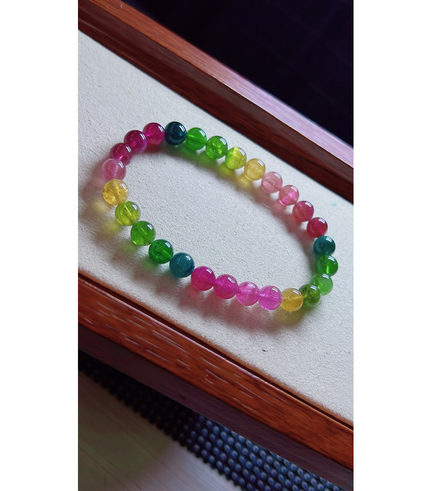 Tags: 1216F9 Rainbow Tourmaline Bracelet, size approximately 6.5mm, weight 12.5 grams, crystal
