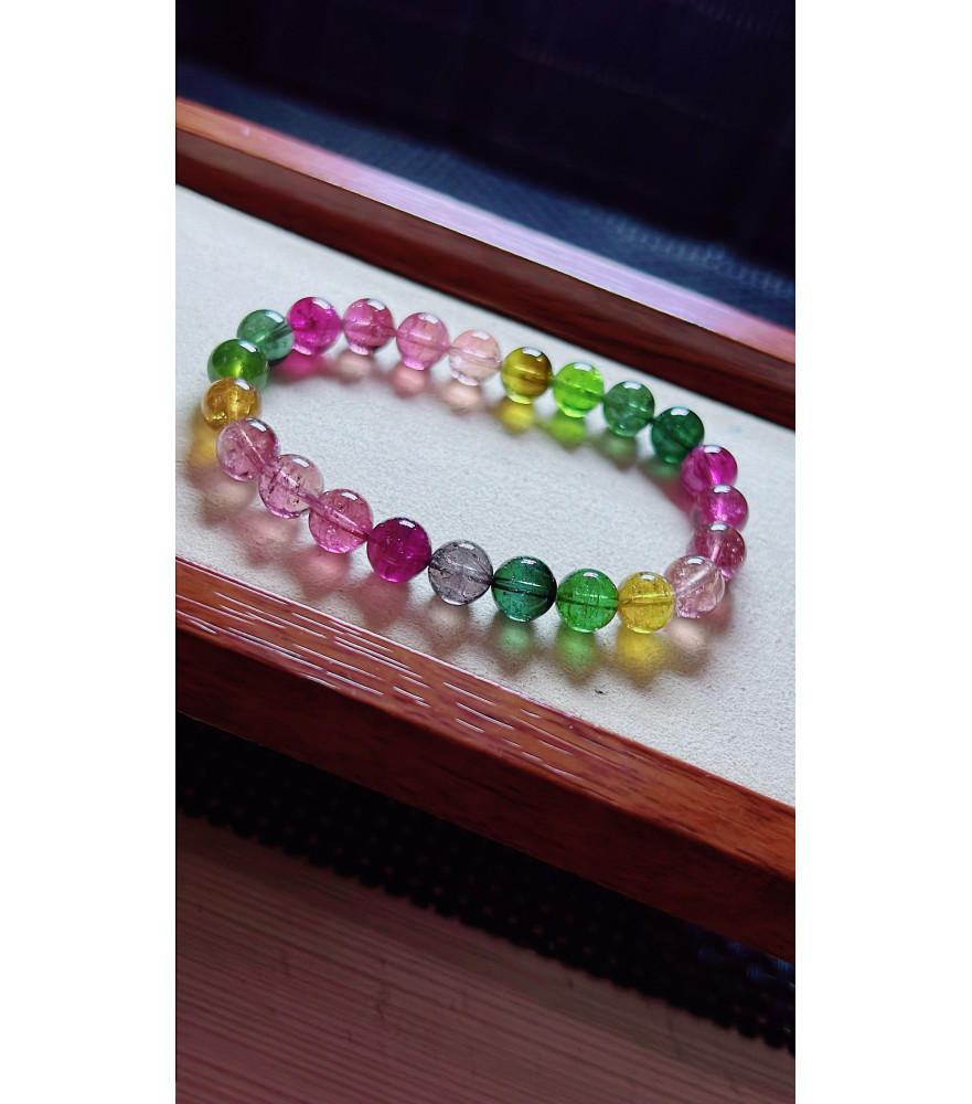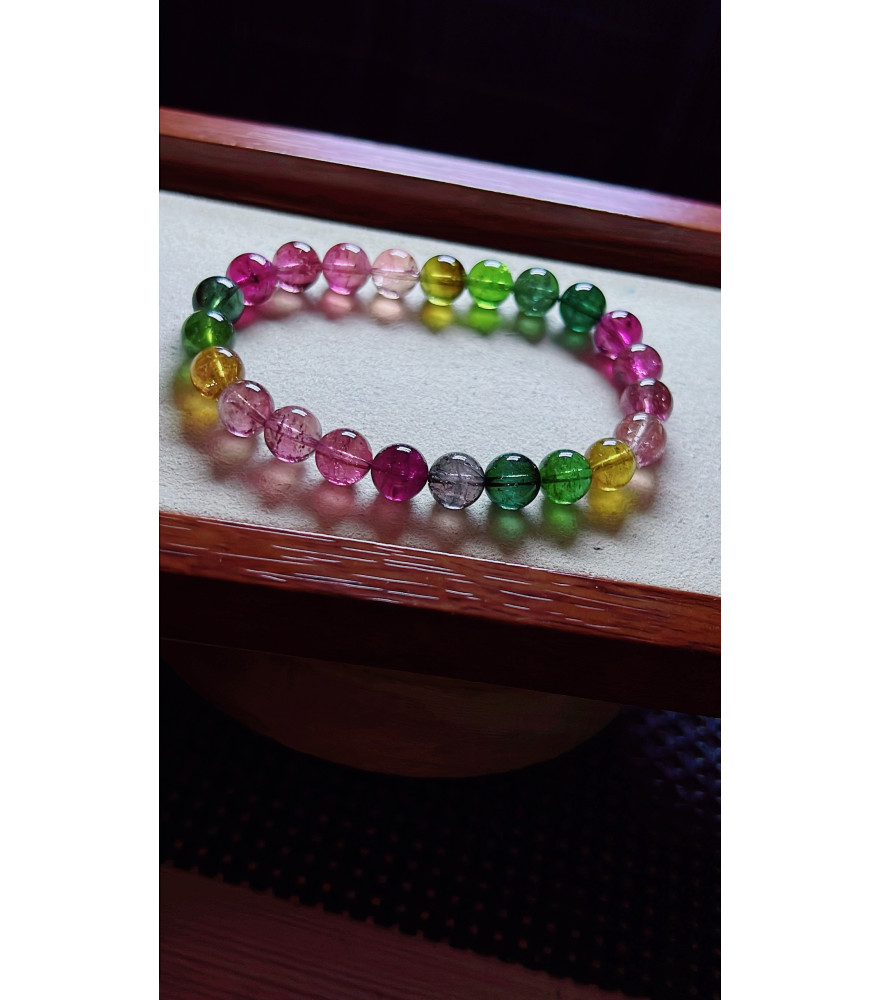 Tags: 1219F13 exquisite rainbow tourmaline bracelet, size about 8mm, weight 19 grams, crystal