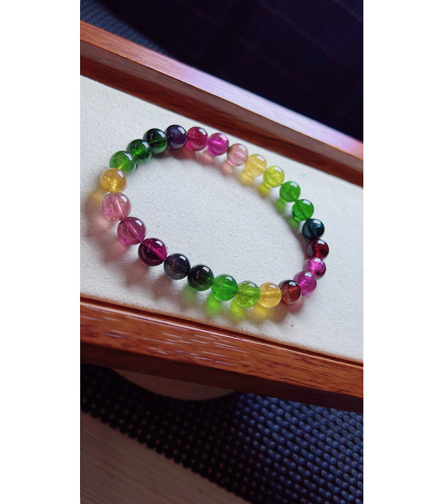 1223F12 exquisite rainbow tourmaline bracelet, size about 7.5mm, weight 17.6 grams