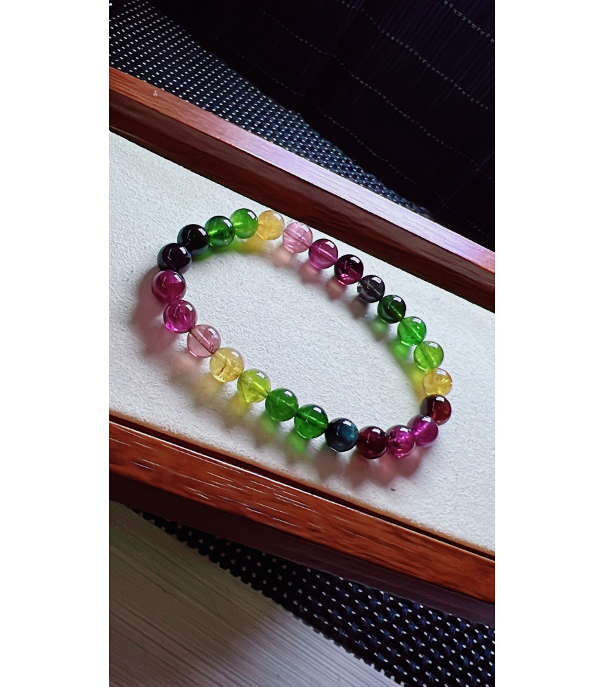 1223F12 exquisite rainbow tourmaline bracelet, size about 7.5mm, weight 17.6 grams, crystal transparent, fresh and smooth color, natural color matching, suitable for women to wear in various occasions