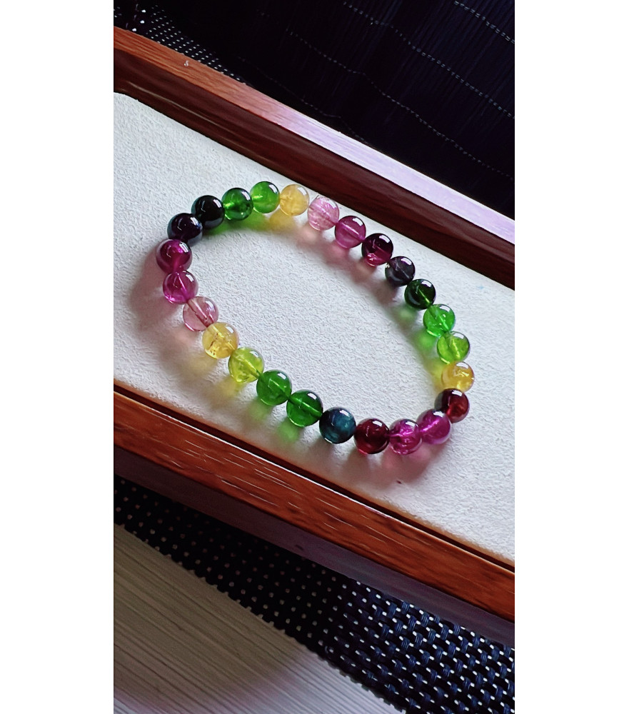 Tags: 1223F12 exquisite rainbow tourmaline bracelet, size about 7.5mm, weight 17.6 grams