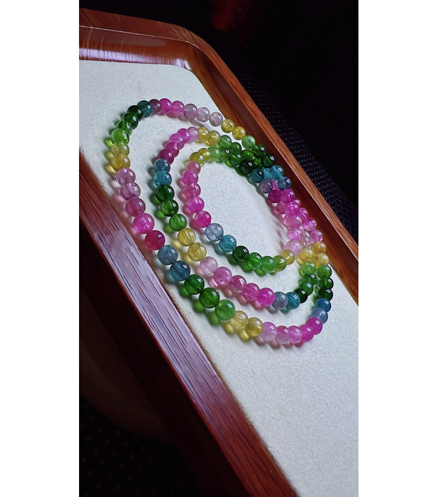 Tags: 1225F2 exquisite rainbow tourmaline three circle bracelet, size about 5.1mm, weight
