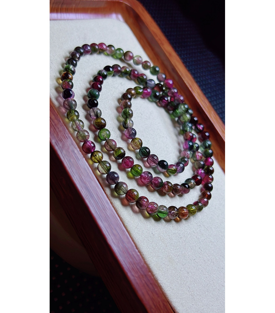 Tags: 1225F6 exquisite watermelon tourmaline three circle bracelet, size about 5mm, weight 23.2