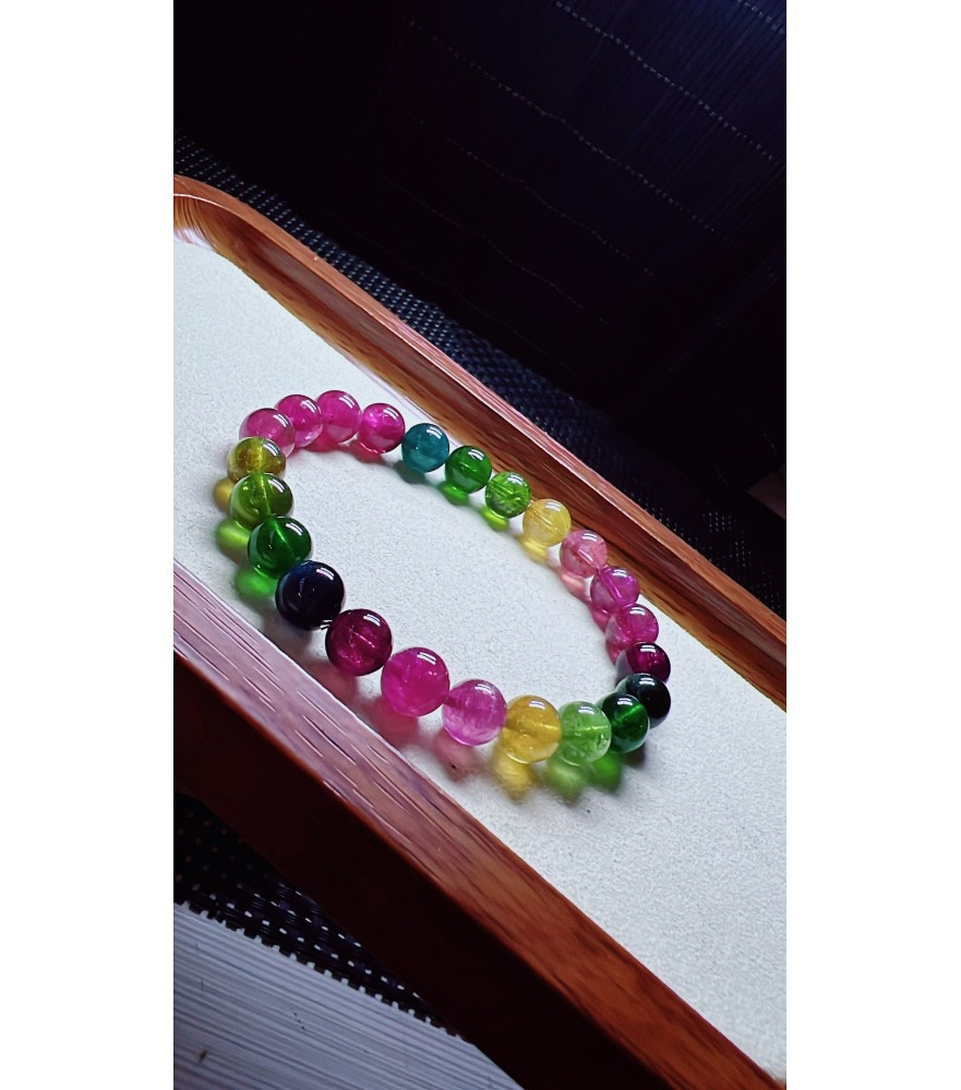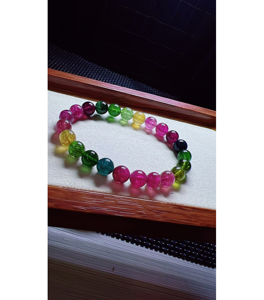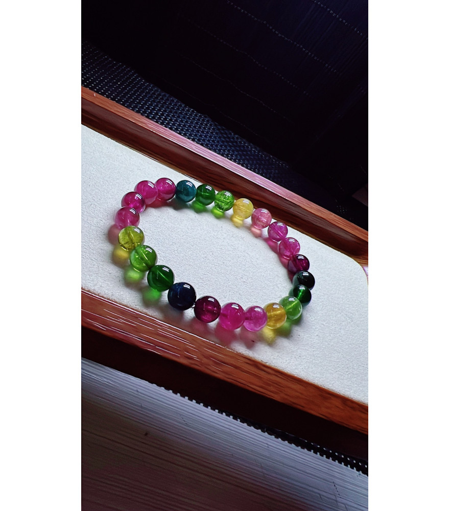 Tags: 1230F10 exquisite rainbow tourmaline bracelet, size about 8mm, weight 20.2 grams, crystal