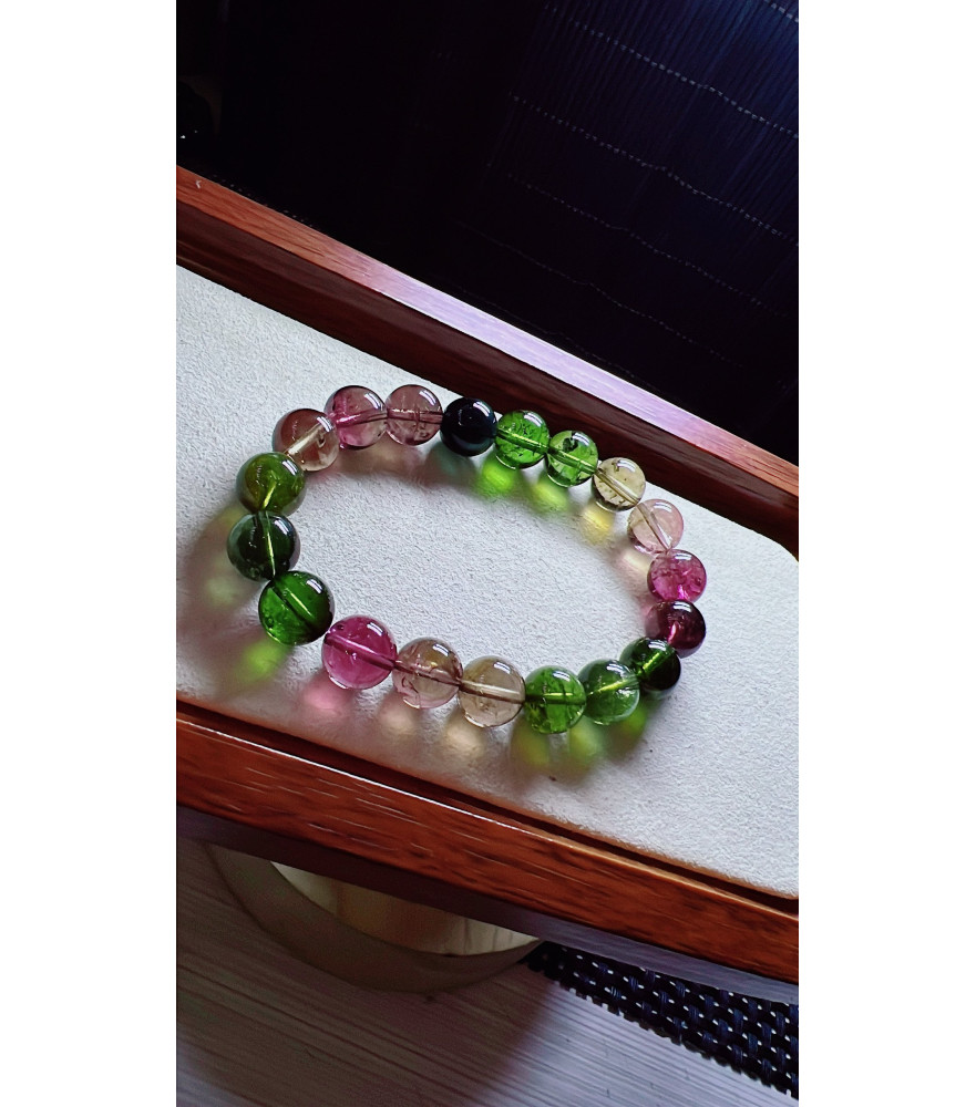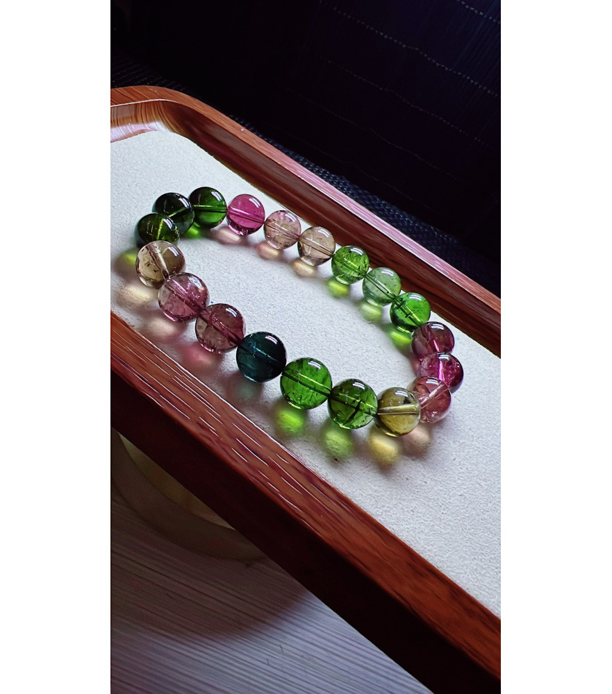 1230F7 exquisite old mine rainbow tourmaline bracelet, specification about 10mm, weight 32.1 grams, crystal transparency, fresh and smooth color, natural color matching, suitable for women to wear in various occasions