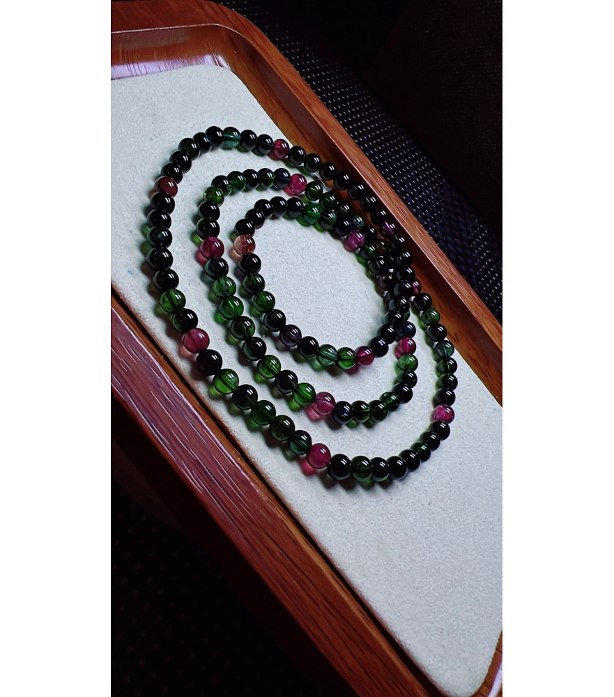 123F3 exquisite old mine black sugar tourmaline three circle bracelet, size about 5mm, weight 23.3g, crystal transparent, fresh and smooth color, natural color matching, suitable for women to wear in various occasions