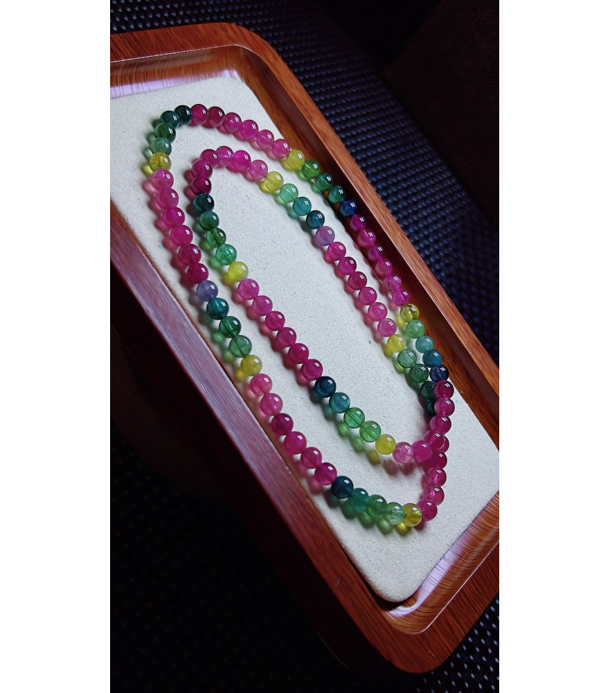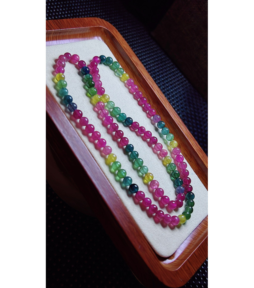 123F6 exquisite color code tourmaline three circle bracelet, size about 5.6mm, weight 28.6g, crystal transparent, fresh and smooth color, natural color matching, suitable for women to wear in various occasions