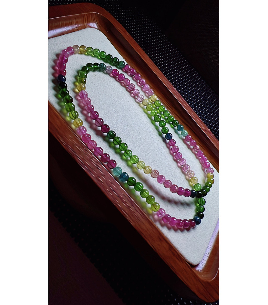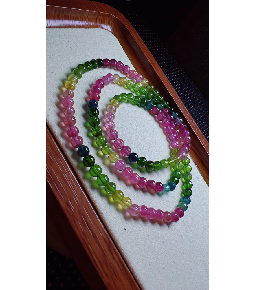 Reviews Over 126F3 exquisite rainbow tourmaline three circle bracelet, size about 4.8mm, weight 20.6g