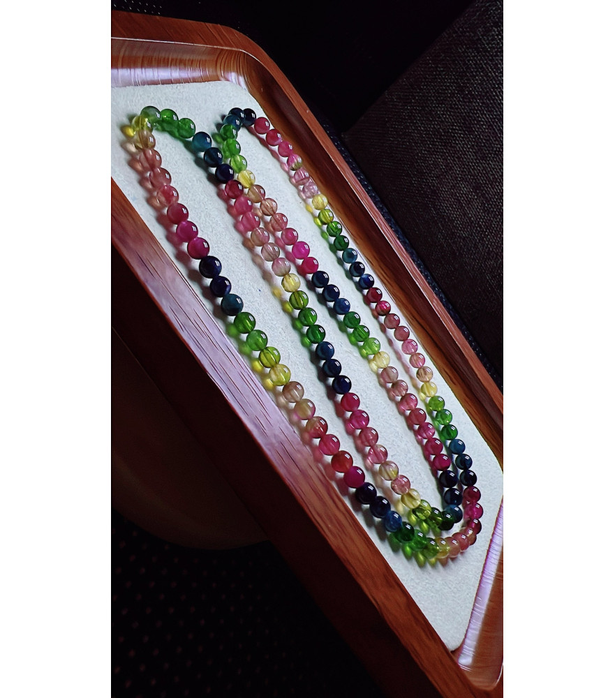 Tags: 129F1 exquisite thick colored rainbow tourmaline three turn bracelet, specification about
