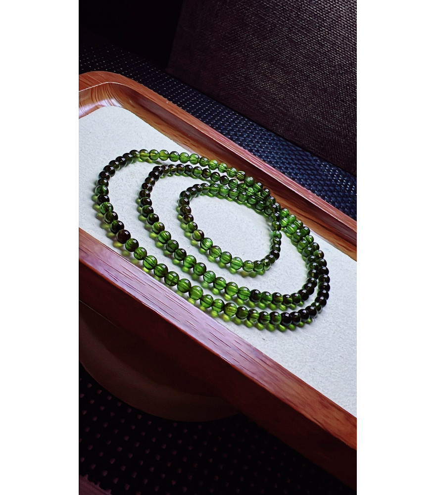 206F4 exquisite green tourmaline three circle bracelet, size about 4mm, weight 15.8g