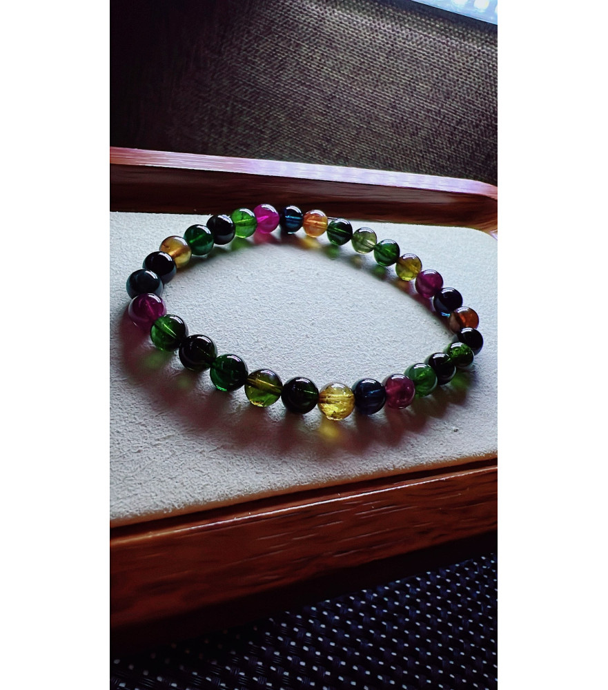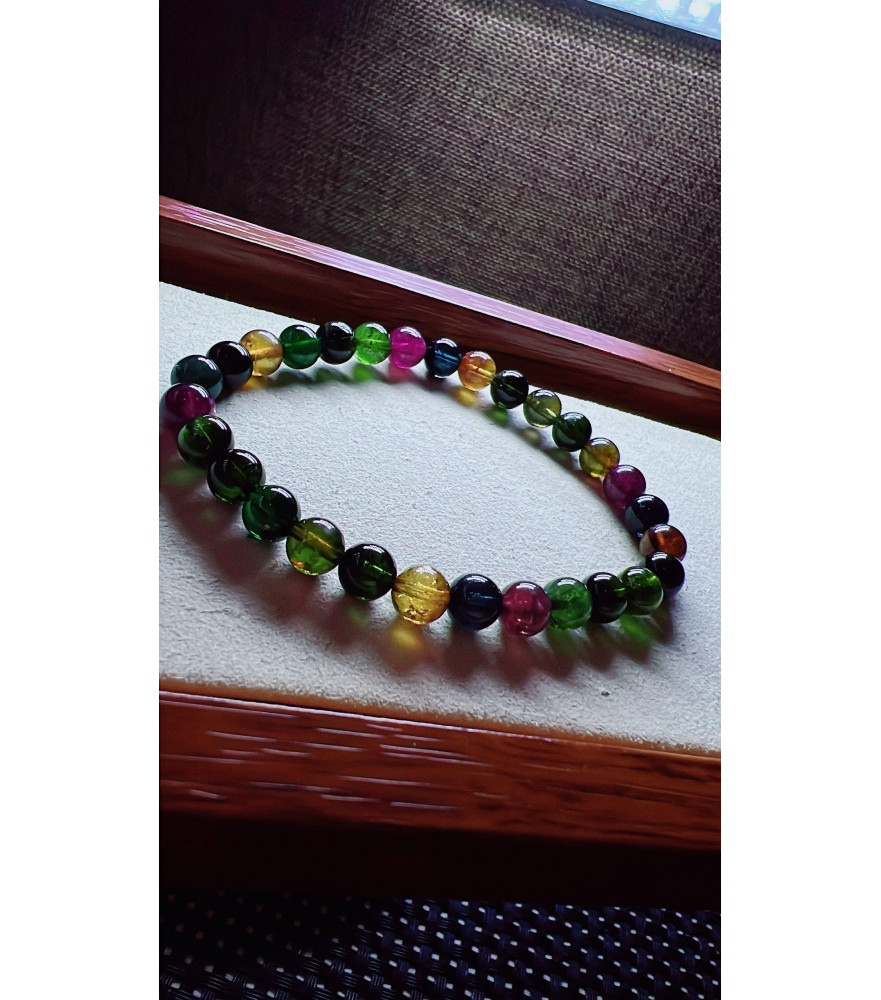 222F1 exquisite black sugar tourmaline bracelet, specification about 6.5mm, weight 12.5 grams, crystal transparent, fresh and smooth color, natural color matching, suitable for women to wear in various occasions