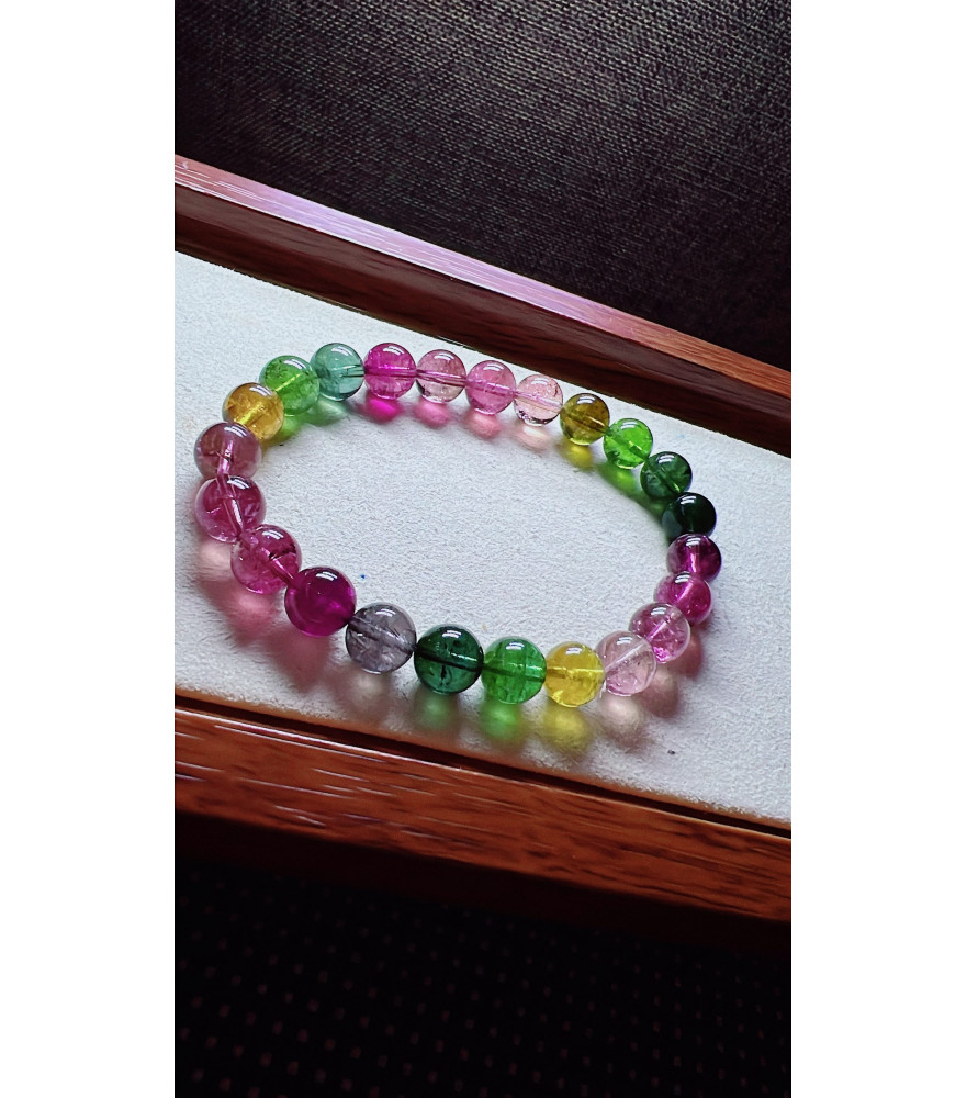 Reviews Over 222F8 exquisite rainbow tourmaline bracelet, specification about 8mm, weight 19 grams