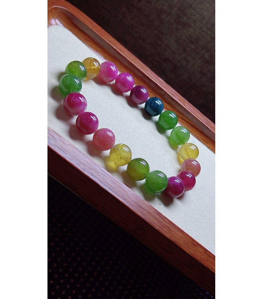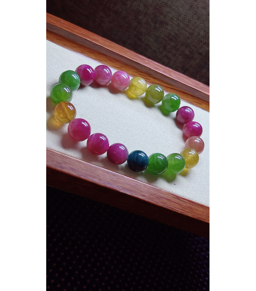 Tags: 306F4 exquisite rainbow tourmaline bracelet, size about 11mm, weight 41.5g, crystal