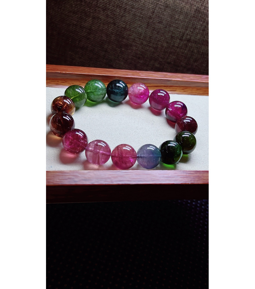 Tags: 306F5 exquisite thick colored rainbow tourmaline bracelet, specification about 14mm