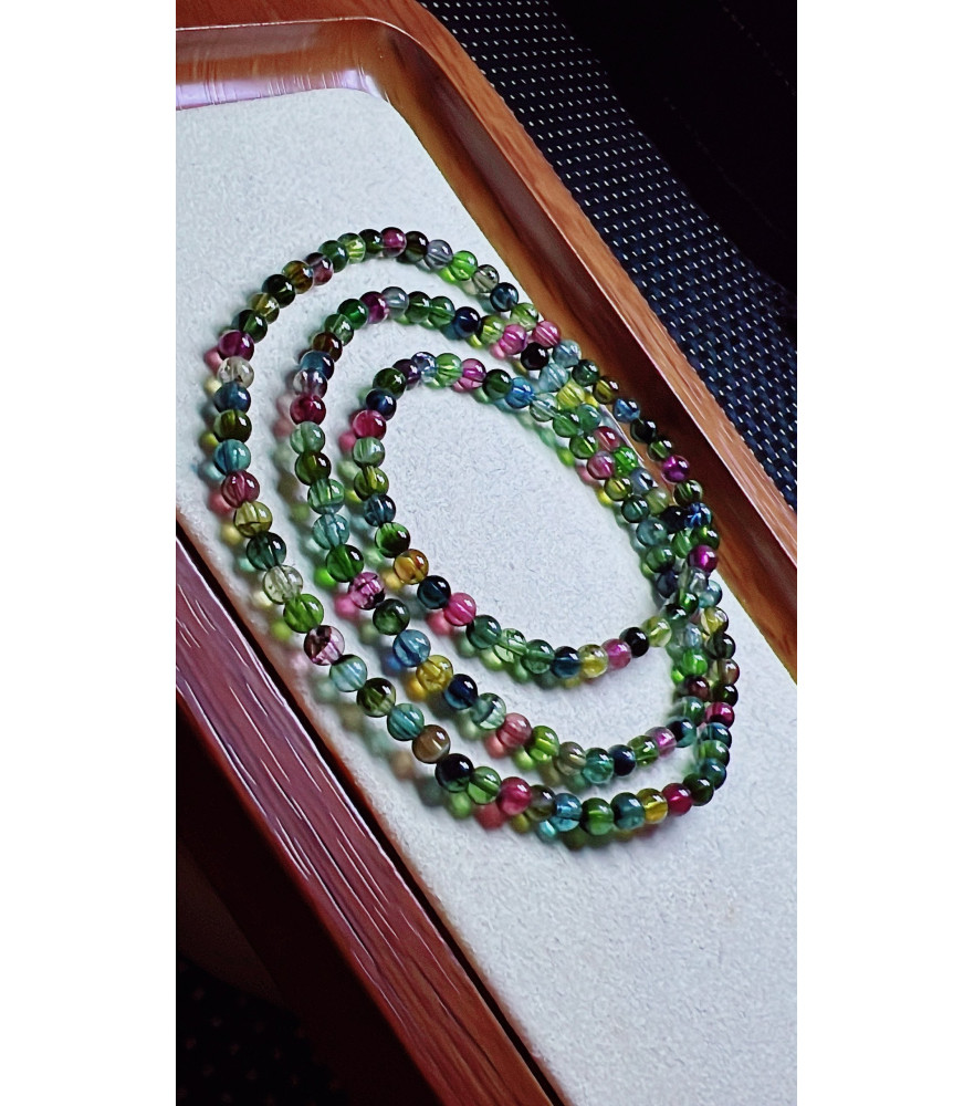 313F1 exquisite old mine black sugar tourmaline three circle small bracelet, size 4.1mm, weight 14.6g, crystal transparent, fresh and smooth color, natural color matching, suitable for women to wear in various occasions