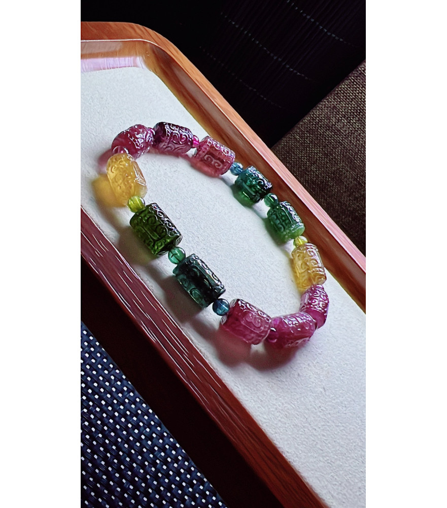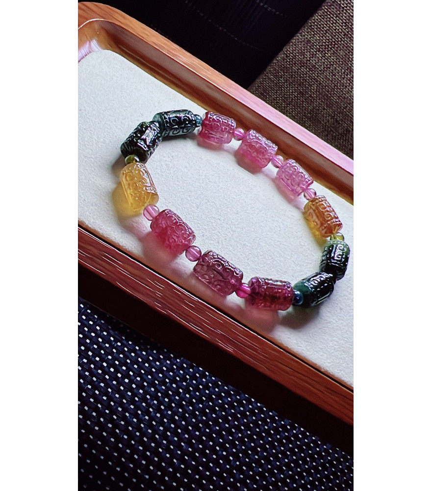 Tags: 313F12 exquisite patterned bead tourmaline bracelet, size 8.5 X12mm, weight 25.7g