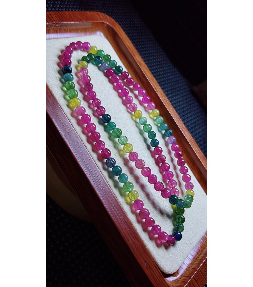313F7 exquisite color code tourmaline three circle bracelet, size 5.8mm, weight 28.7g, crystal transparent, fresh and smooth color, natural color matching, suitable for women to wear in various occasions