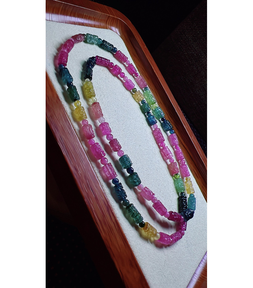 Tags: 317F3 exquisite patterned tourmaline three turn bracelet, size 4.2 X7mm, weight 15.7g