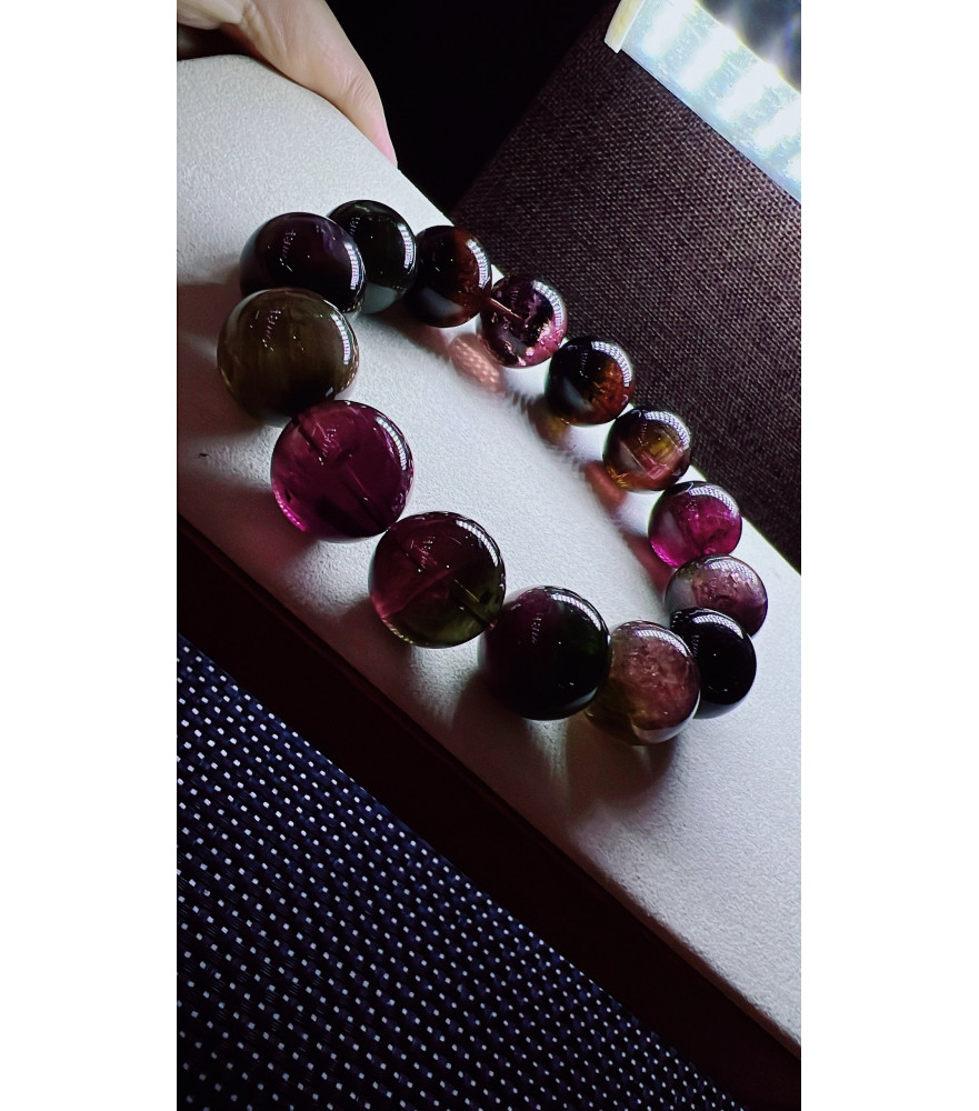 Tags: 318F1 exquisite old mineral watermelon tourmaline bracelet, size 15.7mm, weight 92.2g