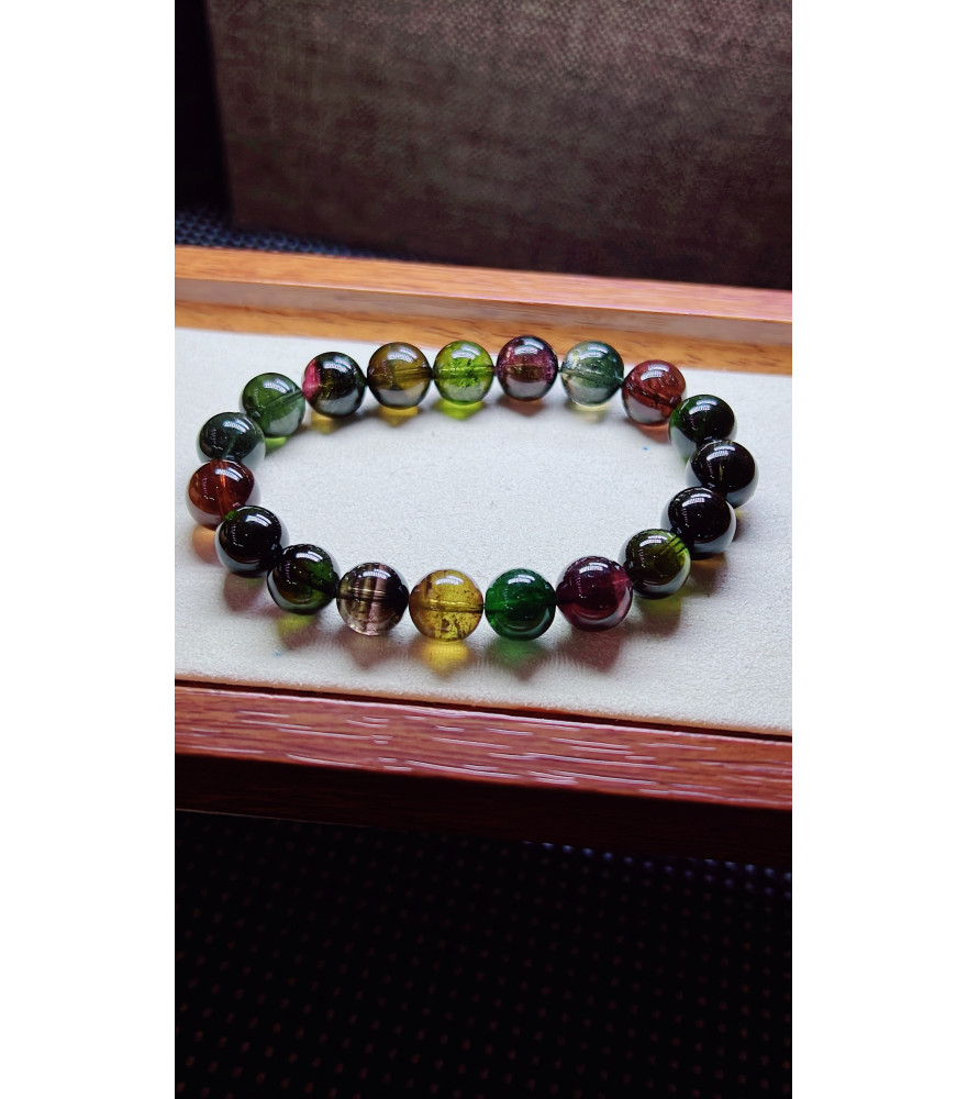 321F10 exquisite black sugar tourmaline bracelet, size 10.2mm, weight 34.4 grams, crystal