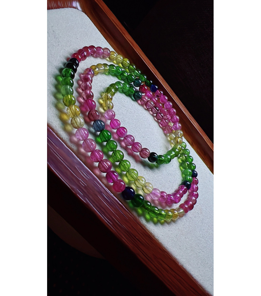 Tags: 327F4 exquisite rainbow tourmaline three circle bracelet, size 4mm, weight 19.5g, crystal