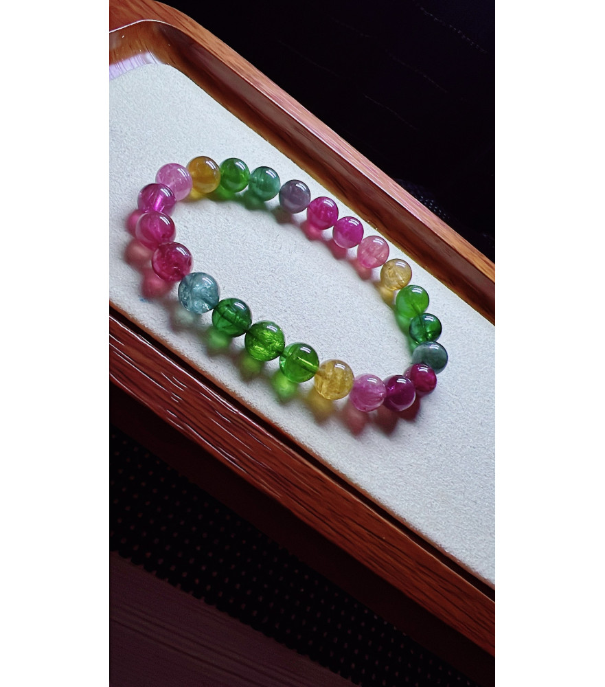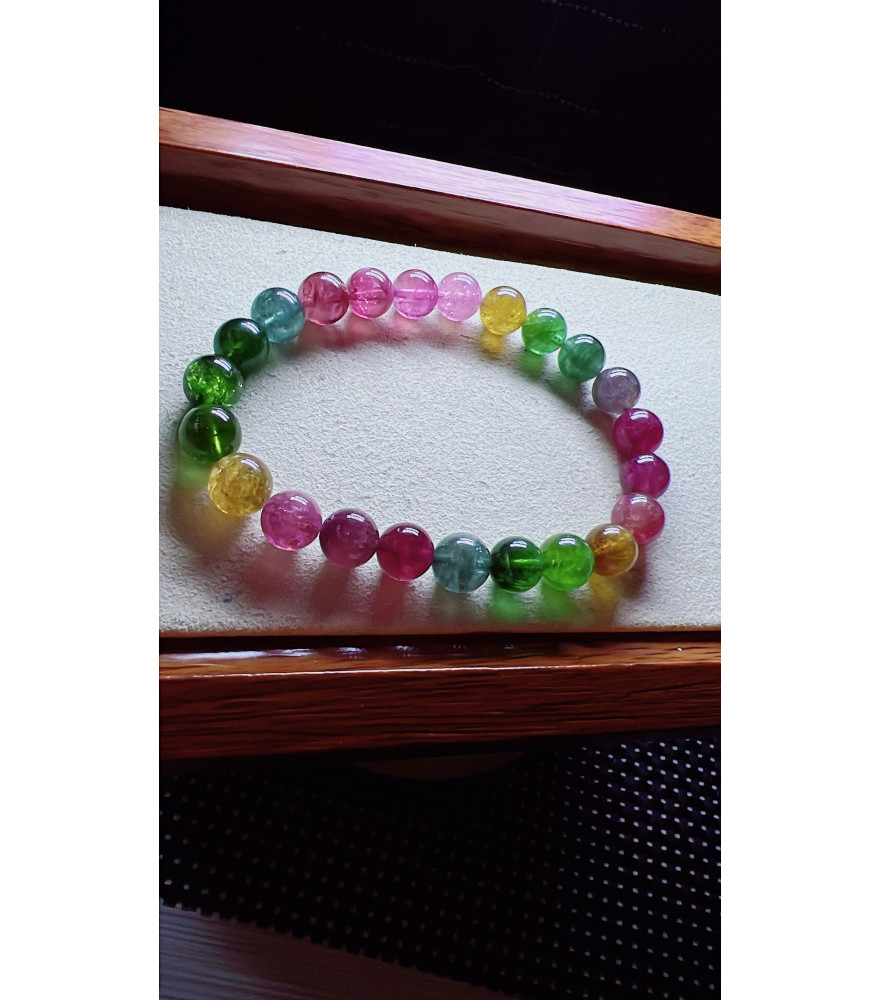 Tags: 1227F4 exquisite rainbow tourmaline bracelet, size about 8mm, weight 19.7g, crystal