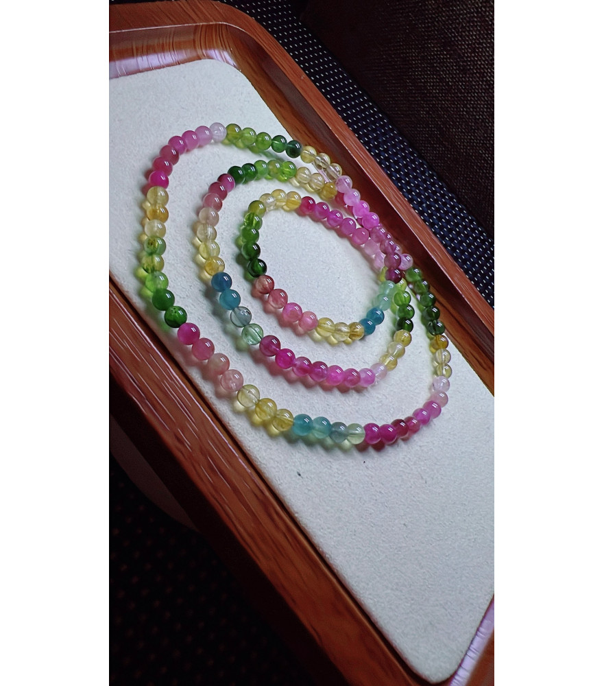 Tags: Exquisite rainbow tourmaline three circle bracelet, with a size of about 4.5mm, weight of