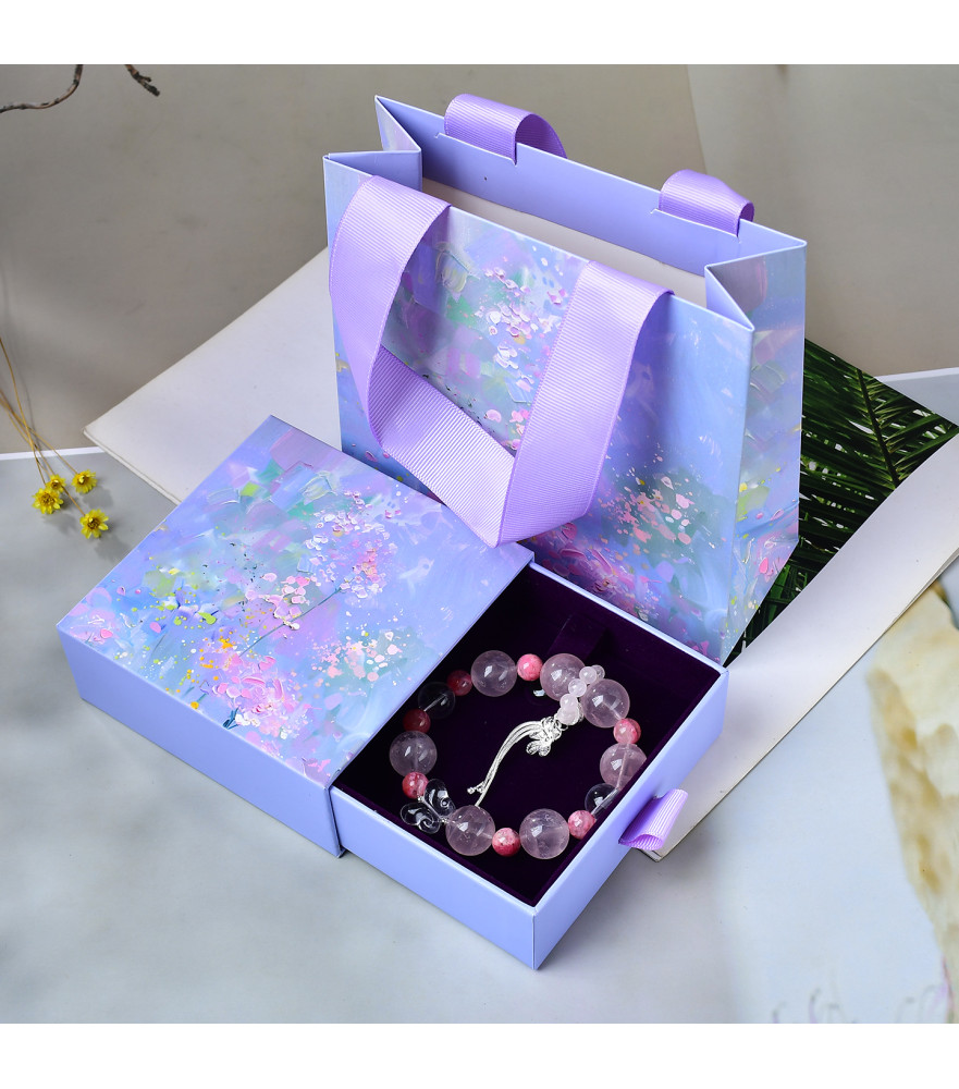 Tags: Natural Rose Quartz Crystal Bracelet with Clear Quartz and Rhodonite Beads, 10mm Pink Gemstone Jewelry for Women with Gift Box