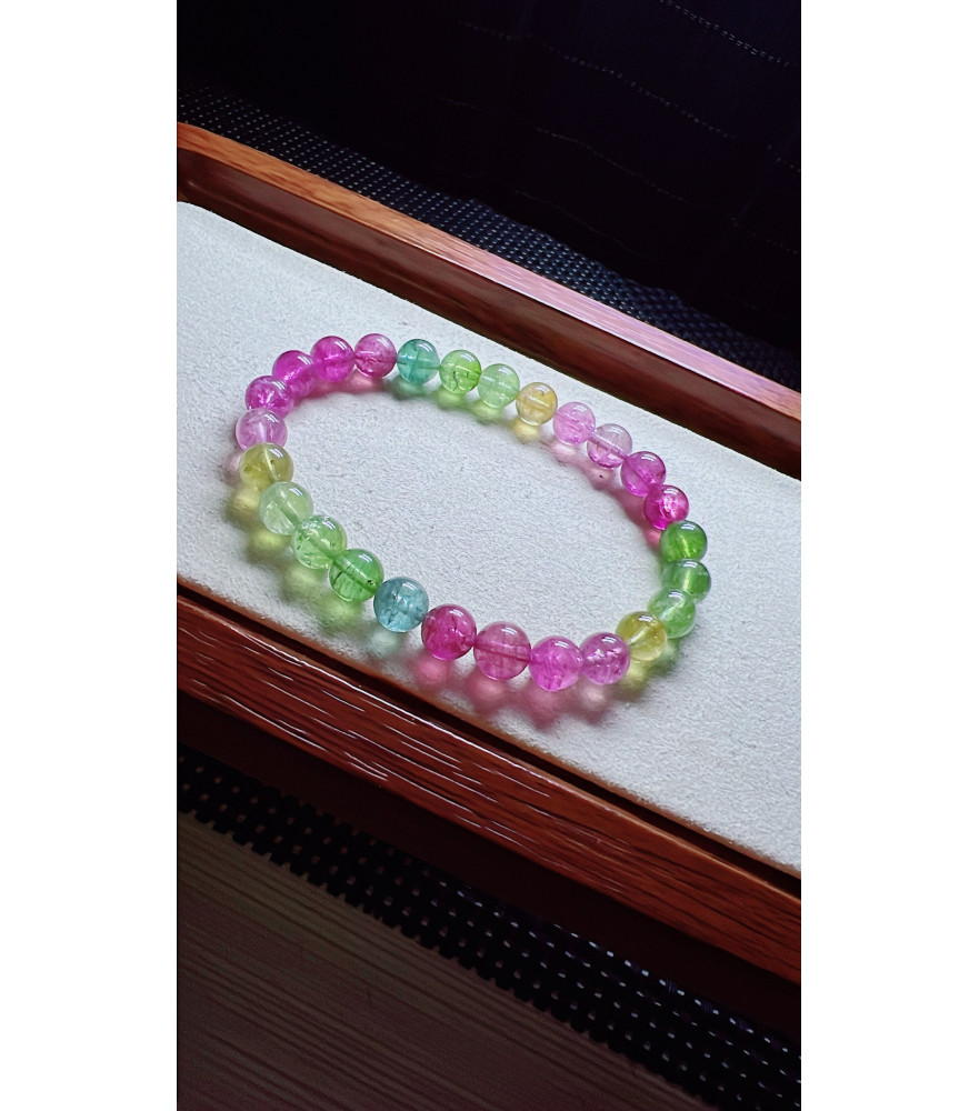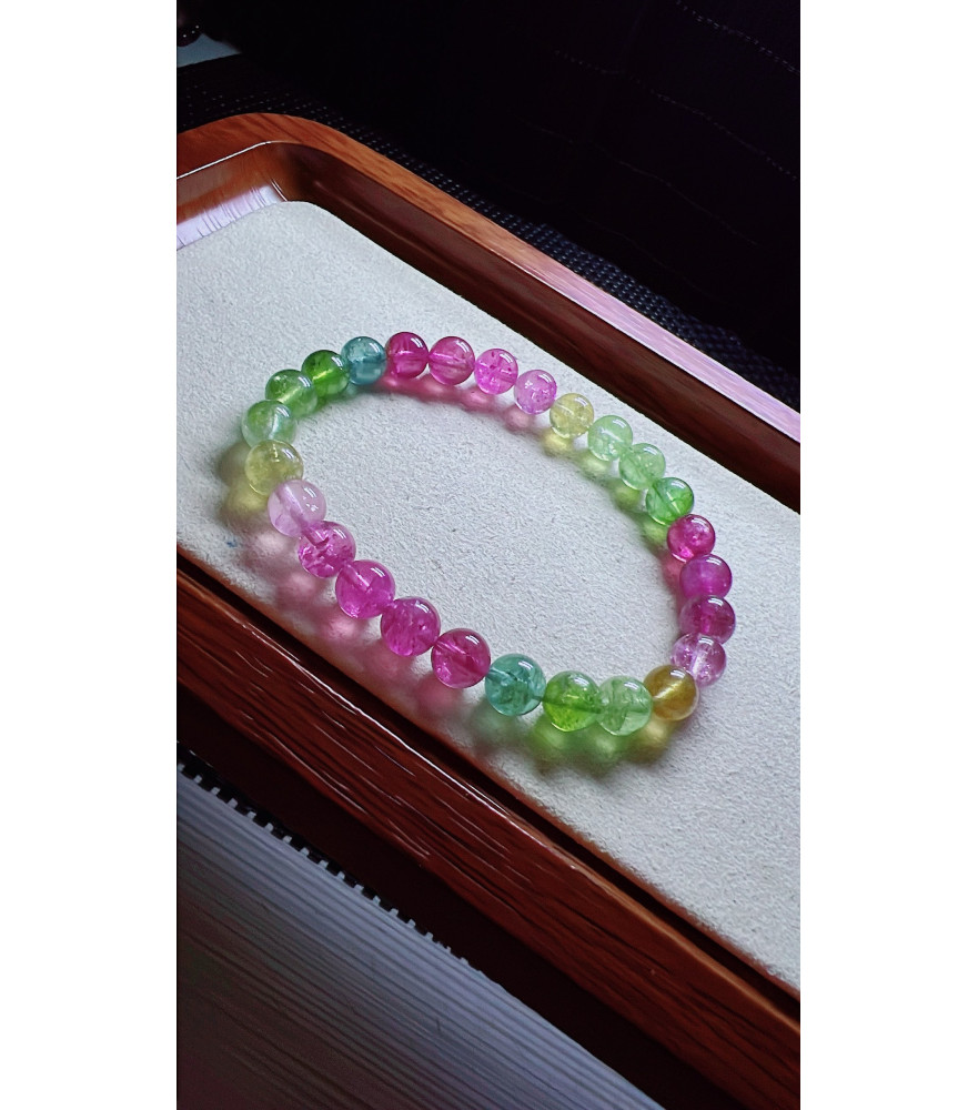 Tags: 101F7 mermaid colored tourmaline bracelet, size about 7mm, weight 14.5 grams, crystal