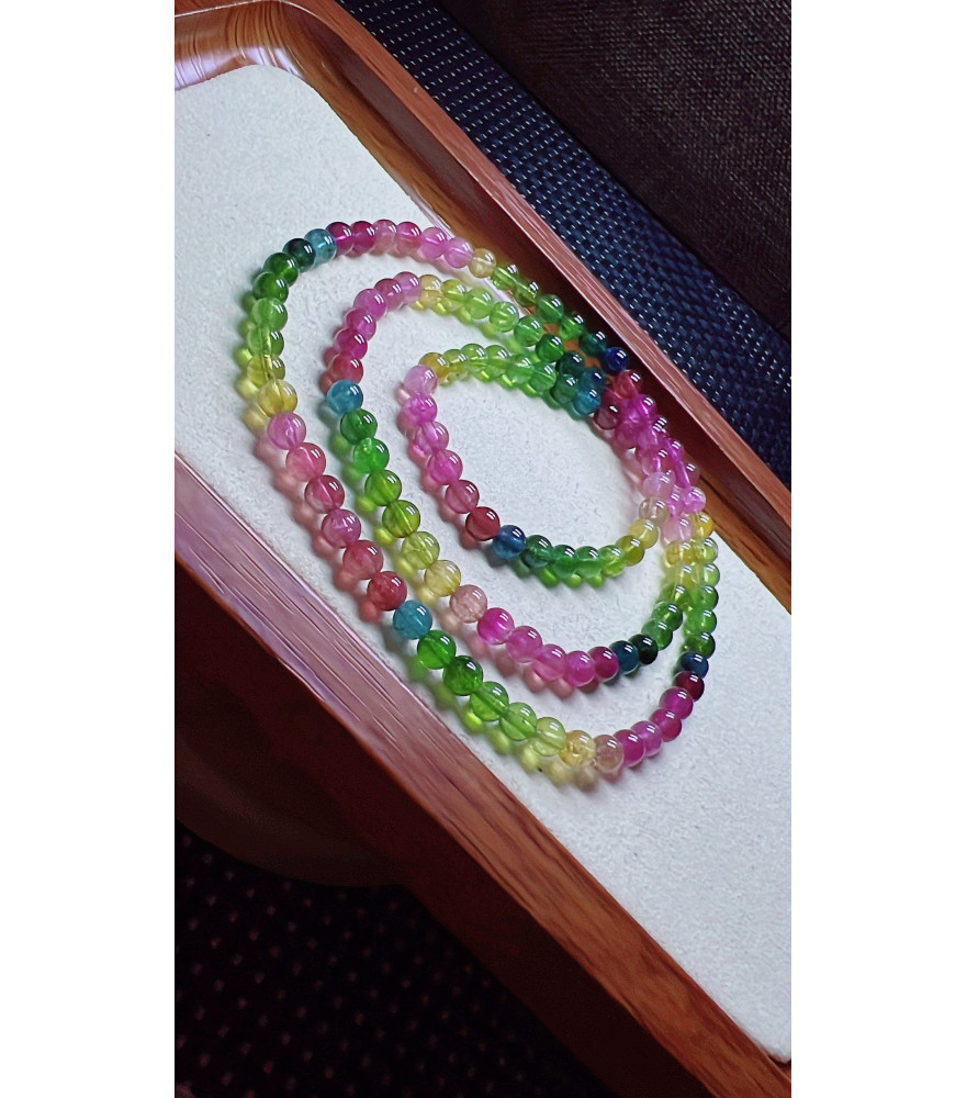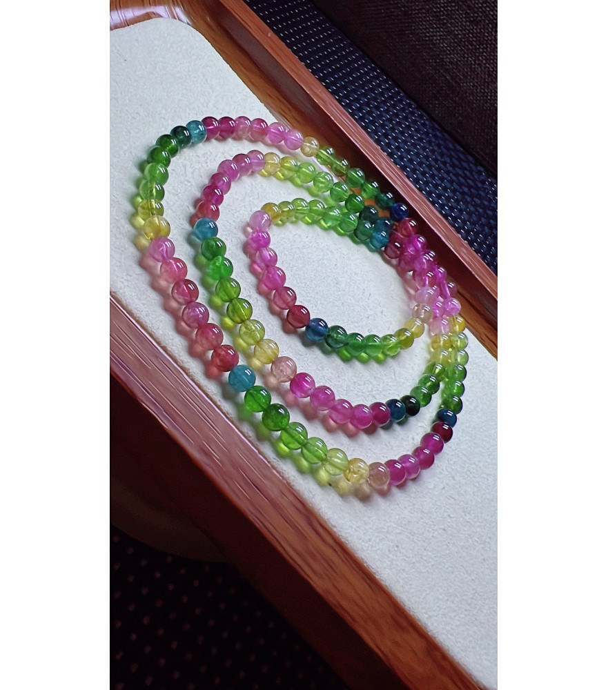 206F5 exquisite rainbow tourmaline three circle bracelet, size about 4.7mm, weight 20.4g, crystal transparent, fresh and smooth color, natural color matching, suitable for women to wear in various occasions