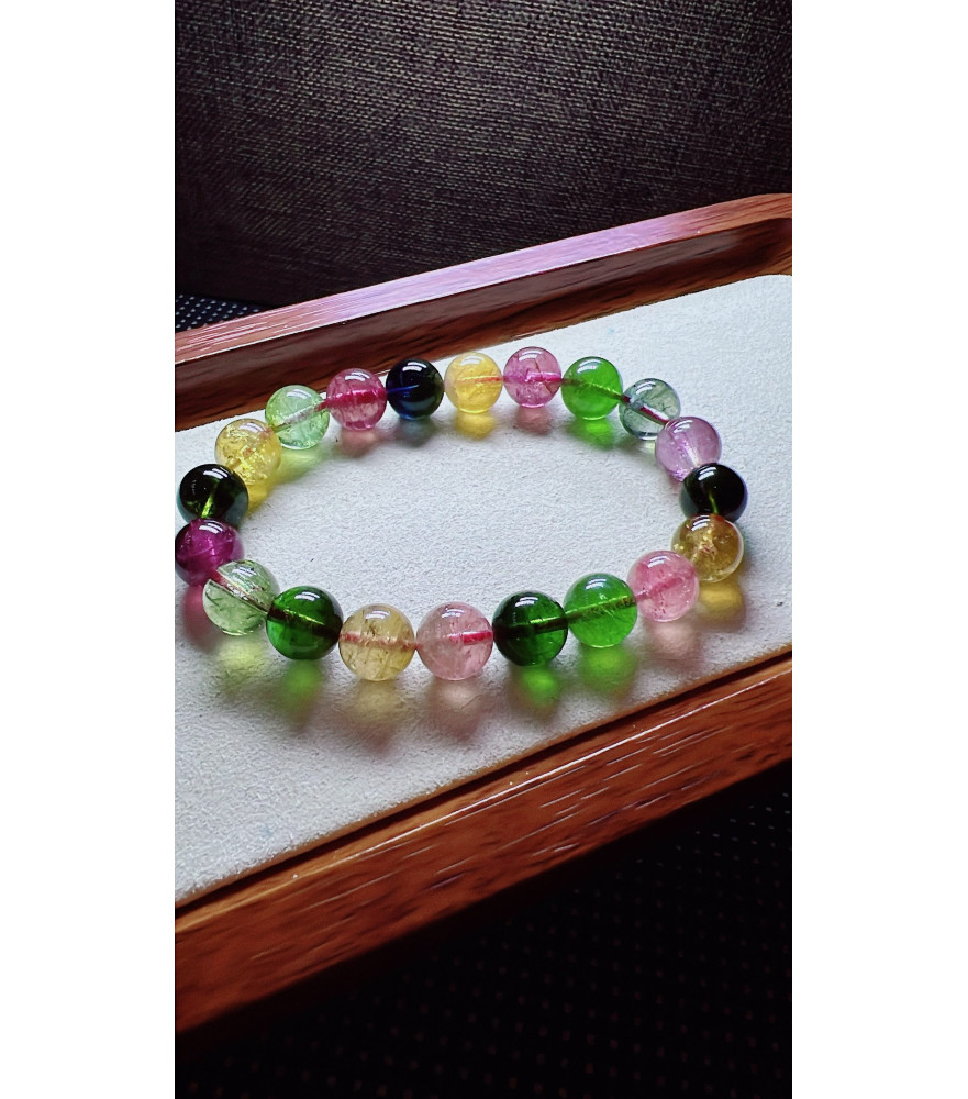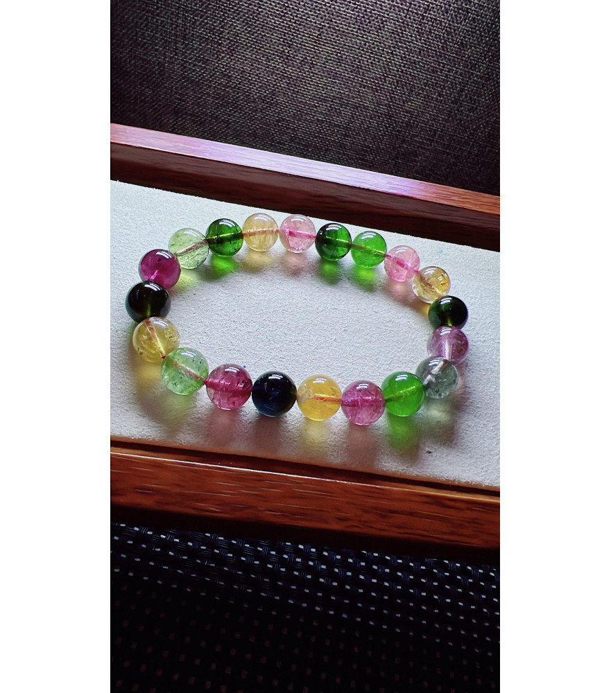 Tags: 222F9 exquisite candy tourmaline bracelet, size about 9.5mm, weight 27.9g, crystal