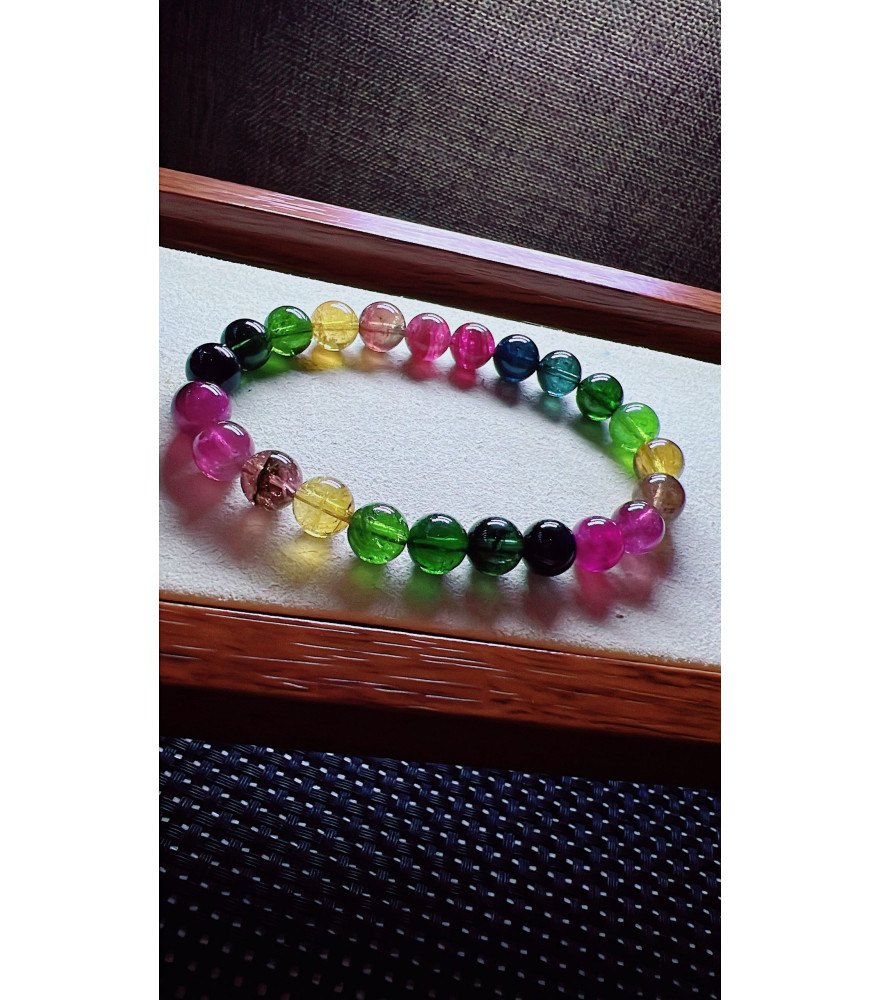 Tags: 222F6 exquisite rainbow tourmaline bracelet, size about 8mm, weight 19.5g, crystal