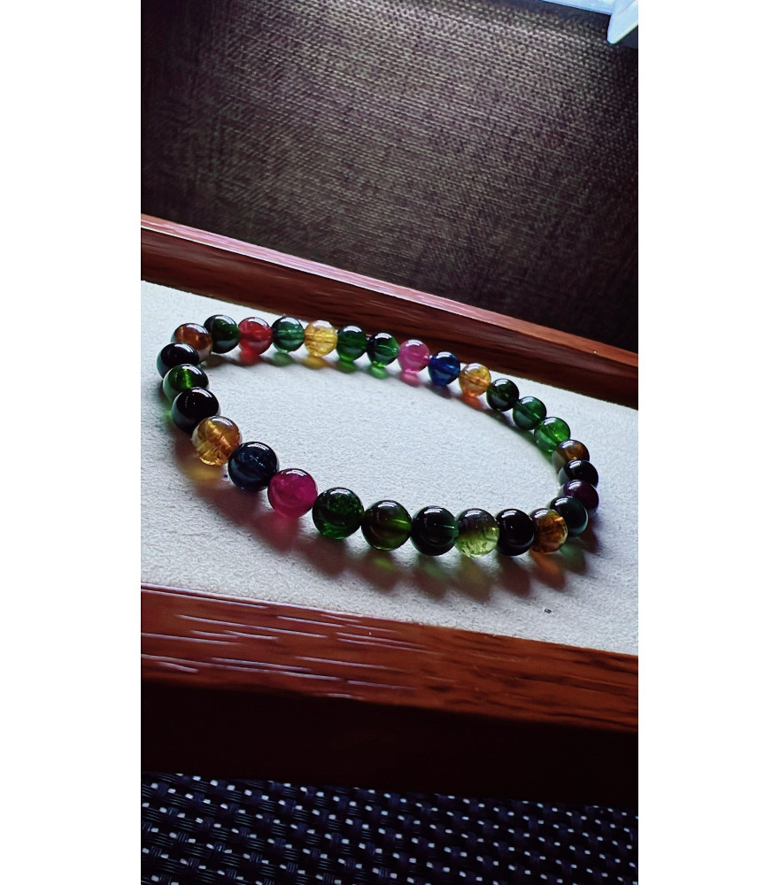 Tags: 222F2 exquisite black sugar tourmaline bracelet, size about 6.3mm, weight 11.6g, crystal