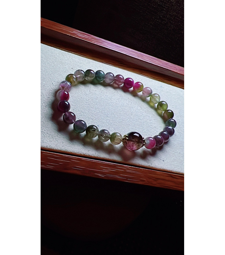 Tags: 126F8 exquisite watermelon tourmaline bracelet, size about 7mm, weight 16.4g, crystal