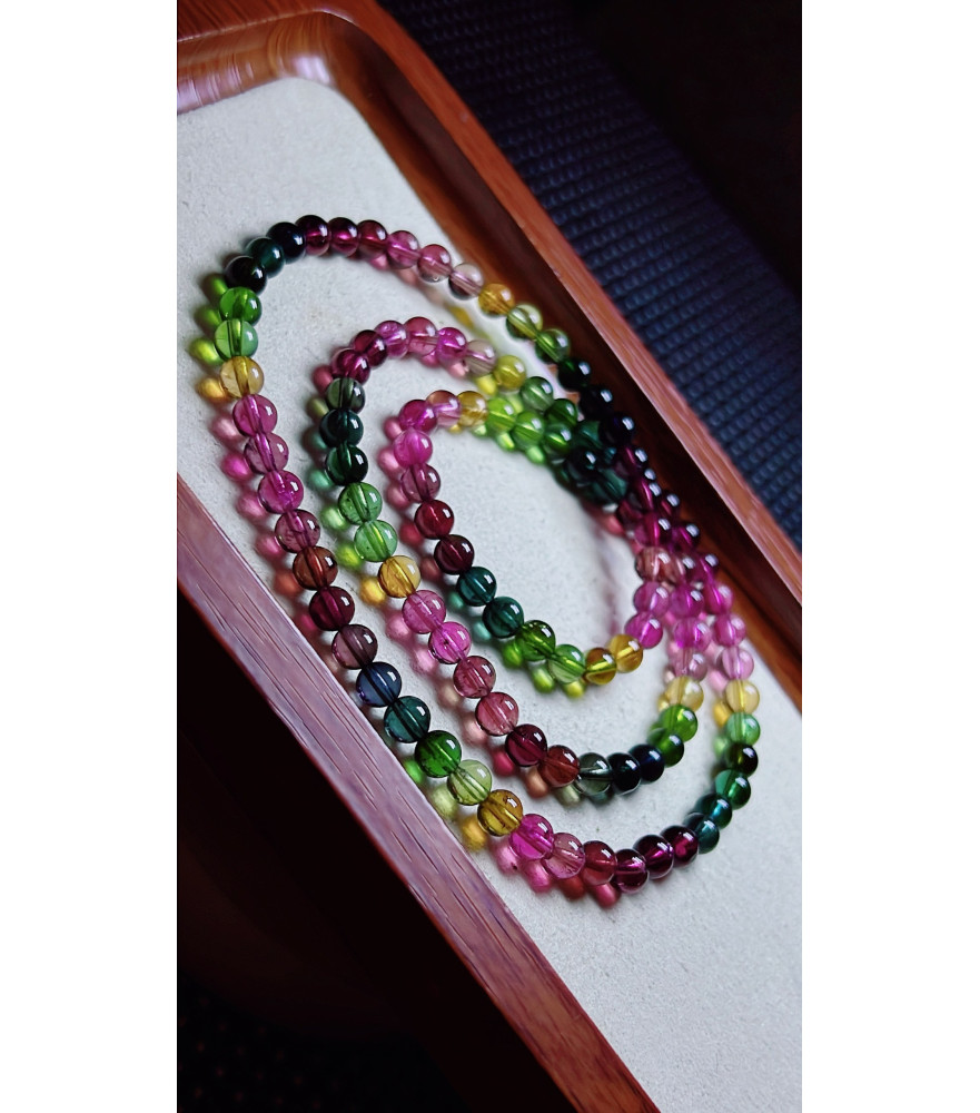 126F7 exquisite thick colored rainbow tourmaline three circle bracelet, size about 5.3mm