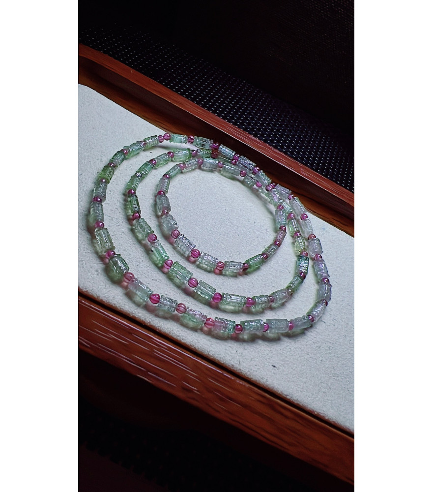 126F1 exquisite blue-green watermelon tourmaline three circle bracelet, size about 3 X6mm, weight 10.2 grams, crystal transparent, fresh and smooth color, natural color matching, suitable for women to wear in various occasions