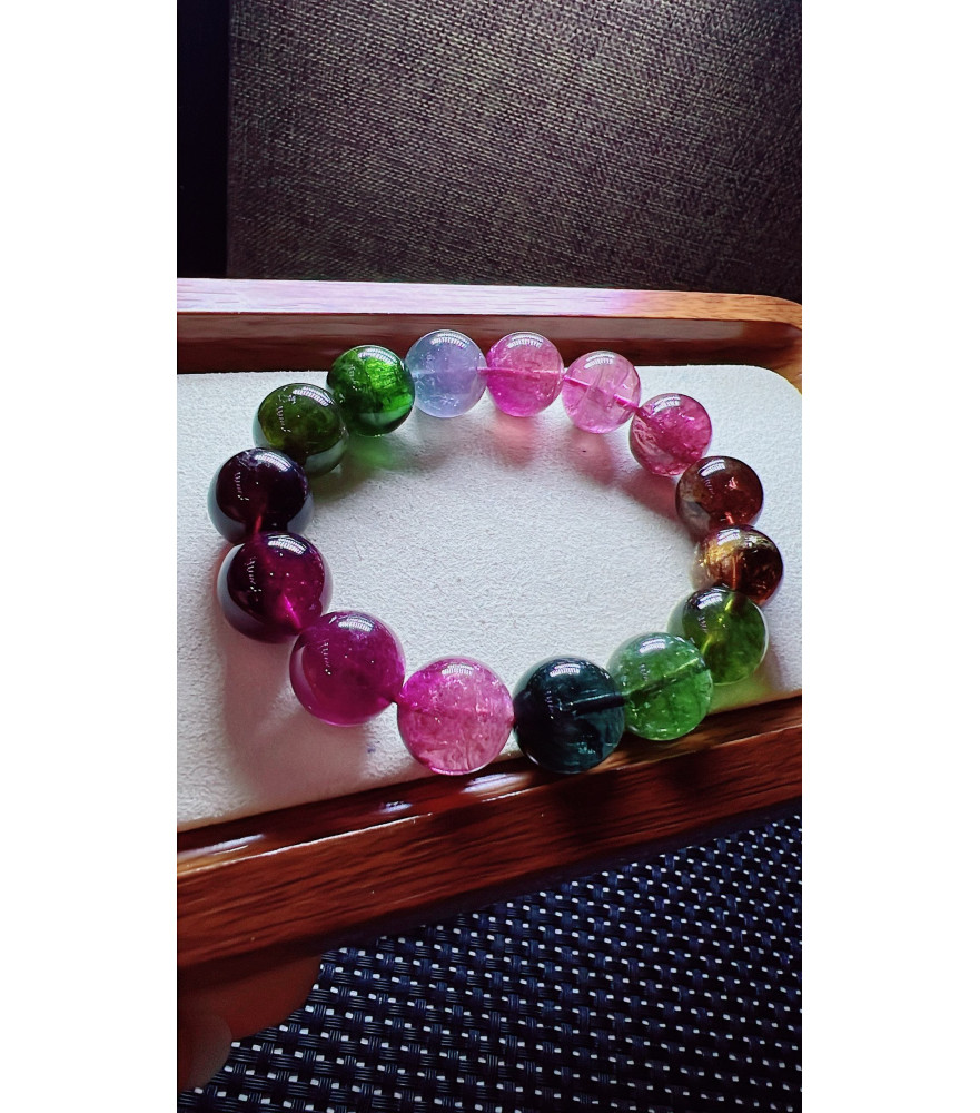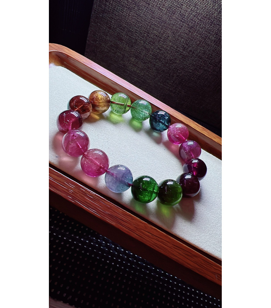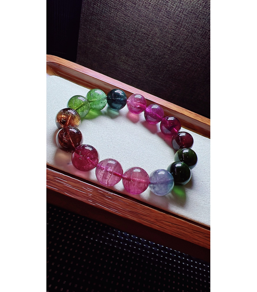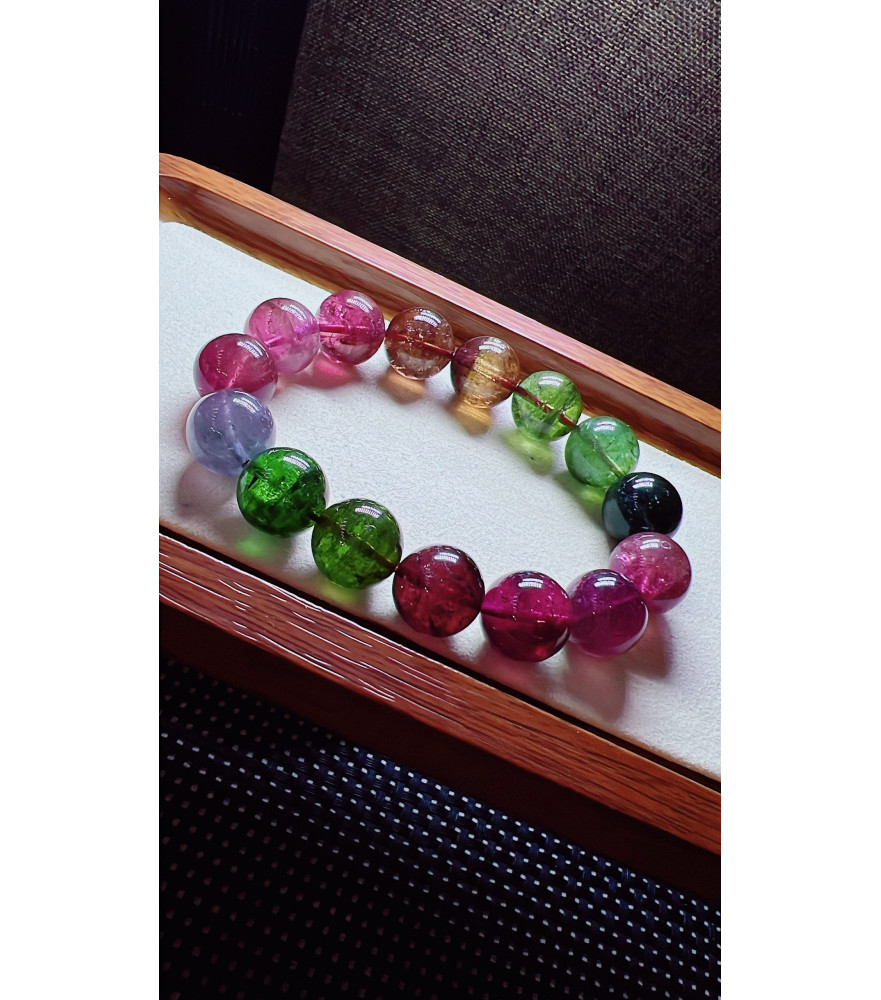 Tags: 123F11 exquisite mermaid colored rainbow tourmaline bracelet, size about 14mm, weight