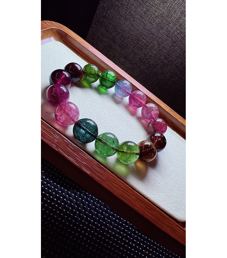 123F11 exquisite mermaid colored rainbow tourmaline bracelet, size about 14mm, weight