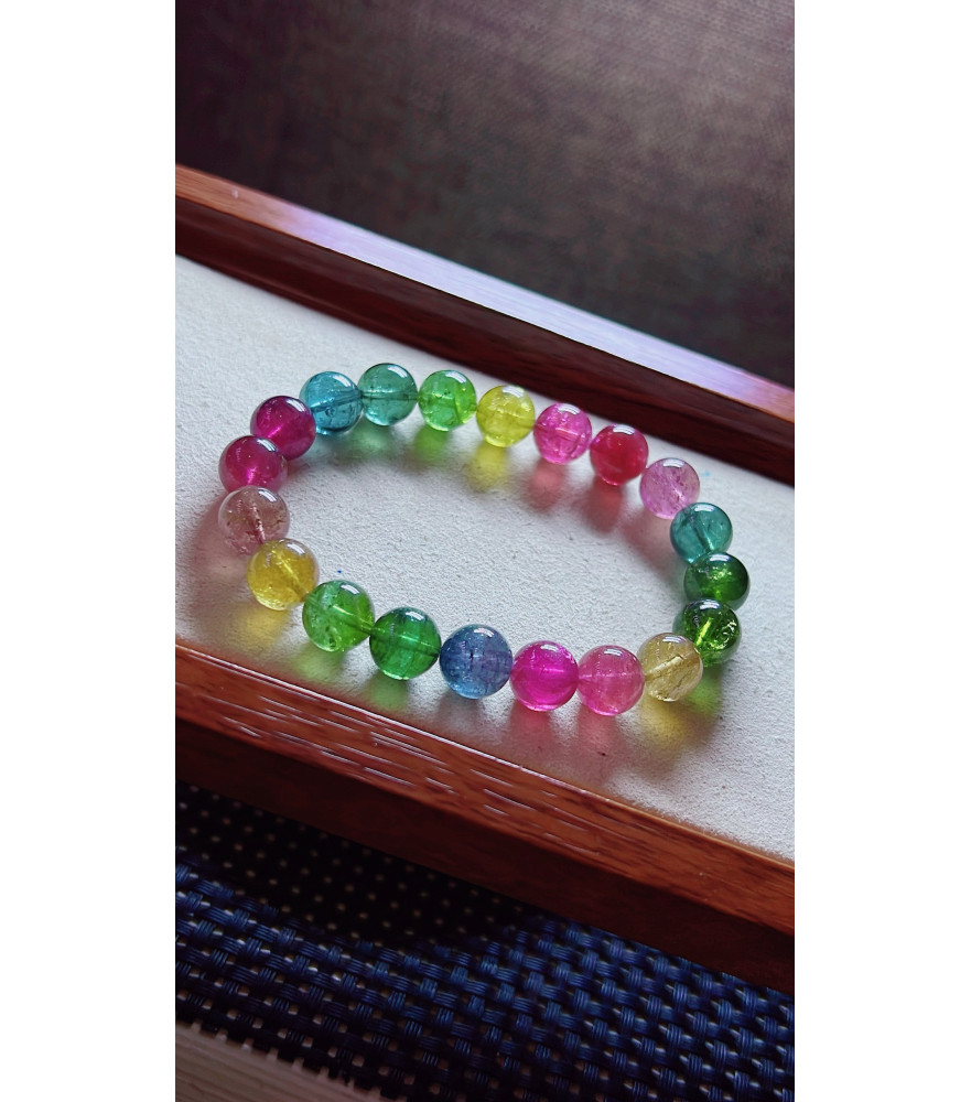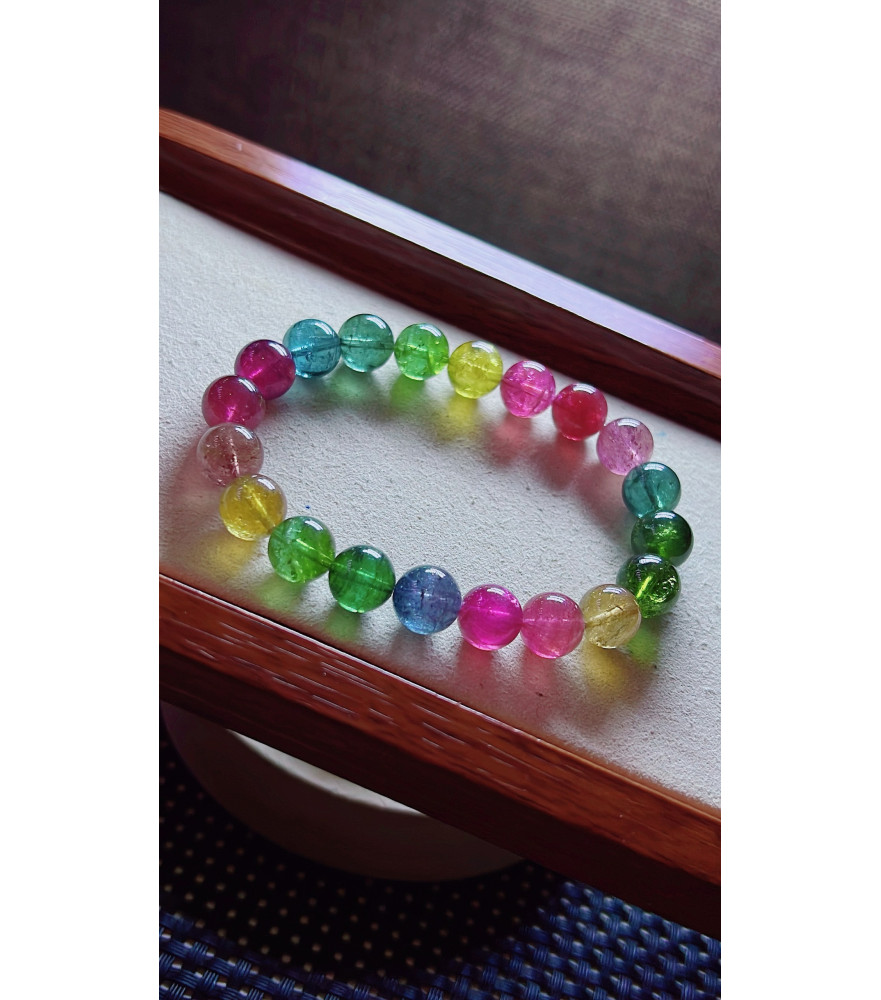105F12 exquisite imperial rainbow tourmaline bracelet, size about 9.5mm, weight 28.2g, crystal transparent, fresh and smooth color, natural color matching, suitable for women to wear in various occasions