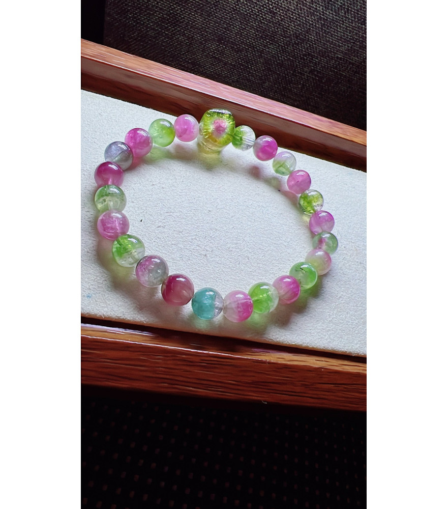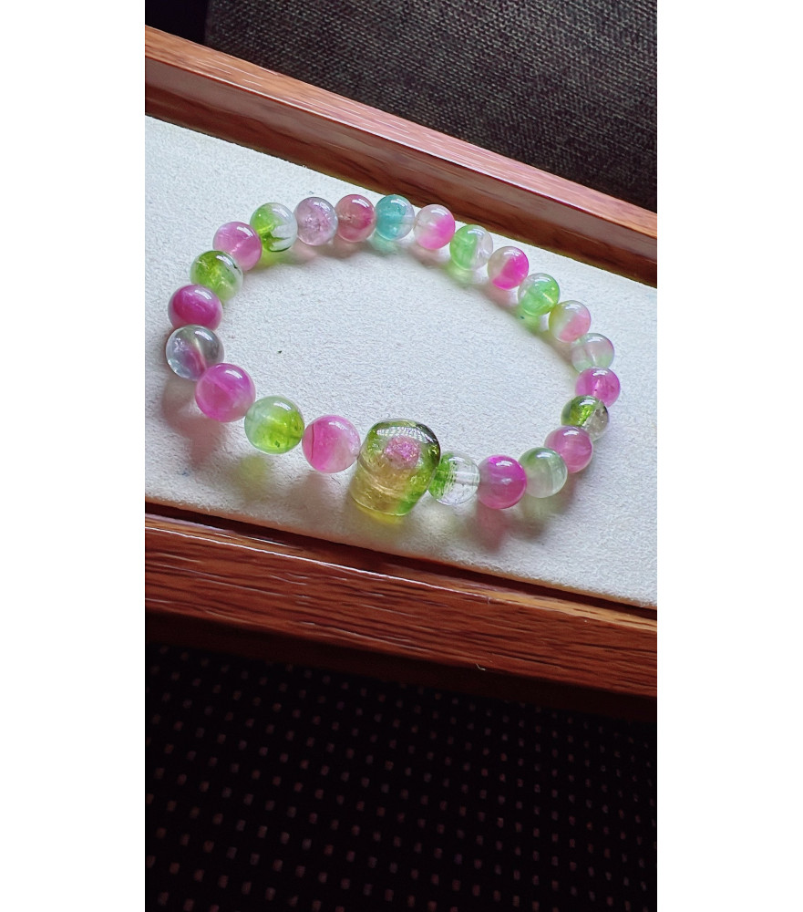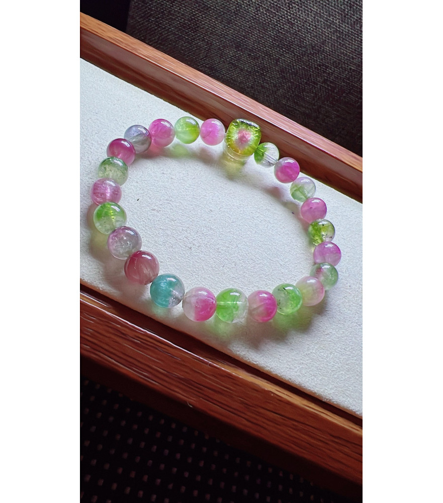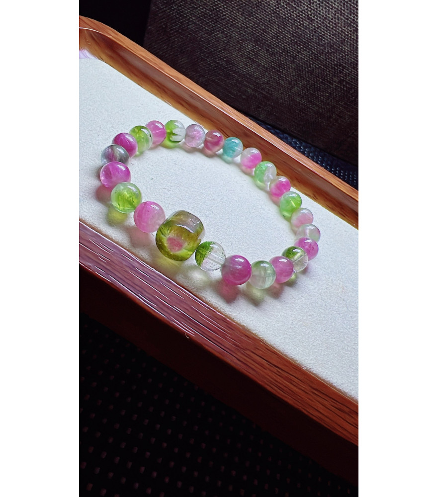 Tags: 318F4 exquisite watermelon tourmaline bracelet, size 7.5mm, weight 19.2g, crystal