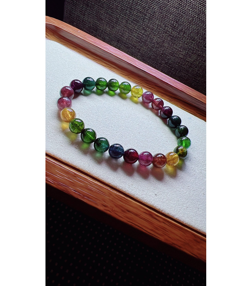 Tags: 317F9 exquisite thick colored rainbow tourmaline bracelet, size 7.5mm, weight 16.5g