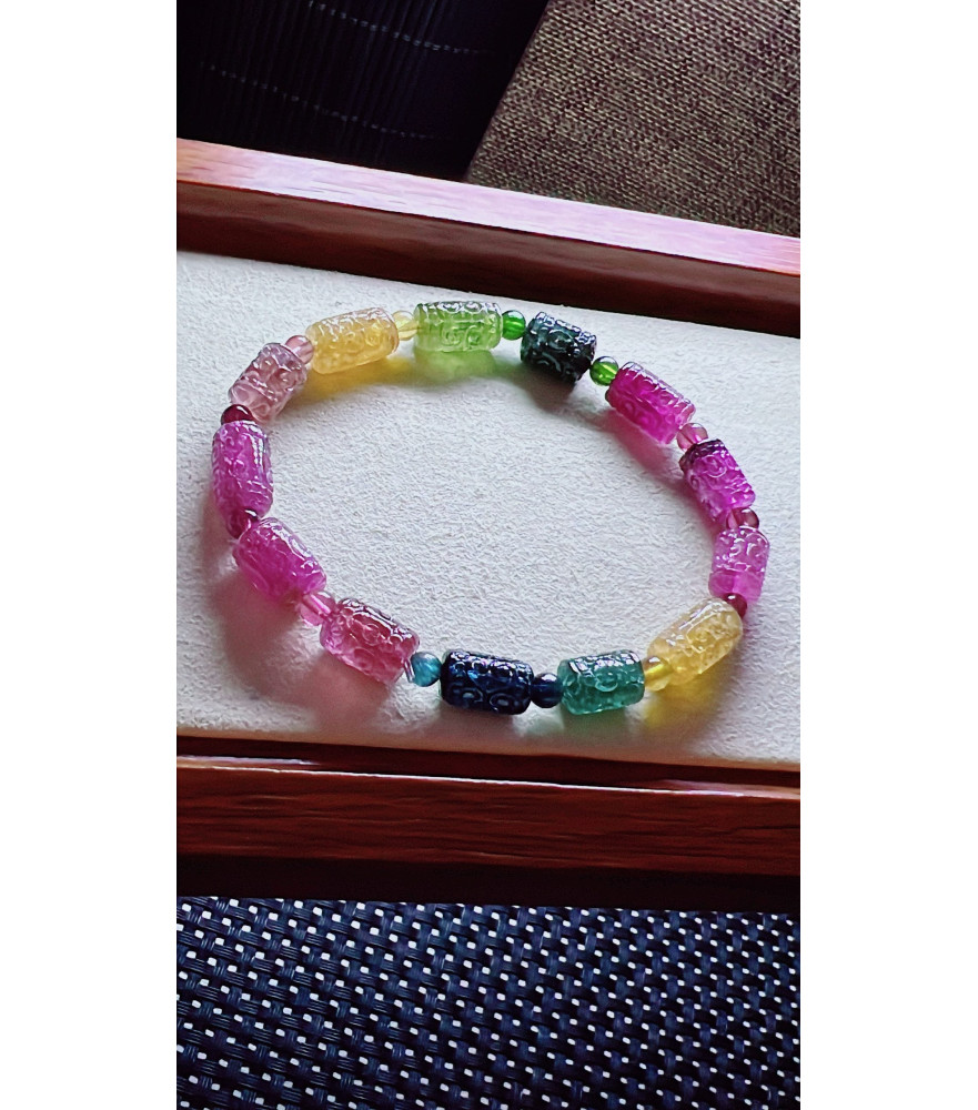 313F13 exquisite patterned bead tourmaline bracelet, size 6.5 X10mm, weight 14.5 grams, crystal transparent, fresh and smooth color, natural color matching, suitable for women to wear in various occasions