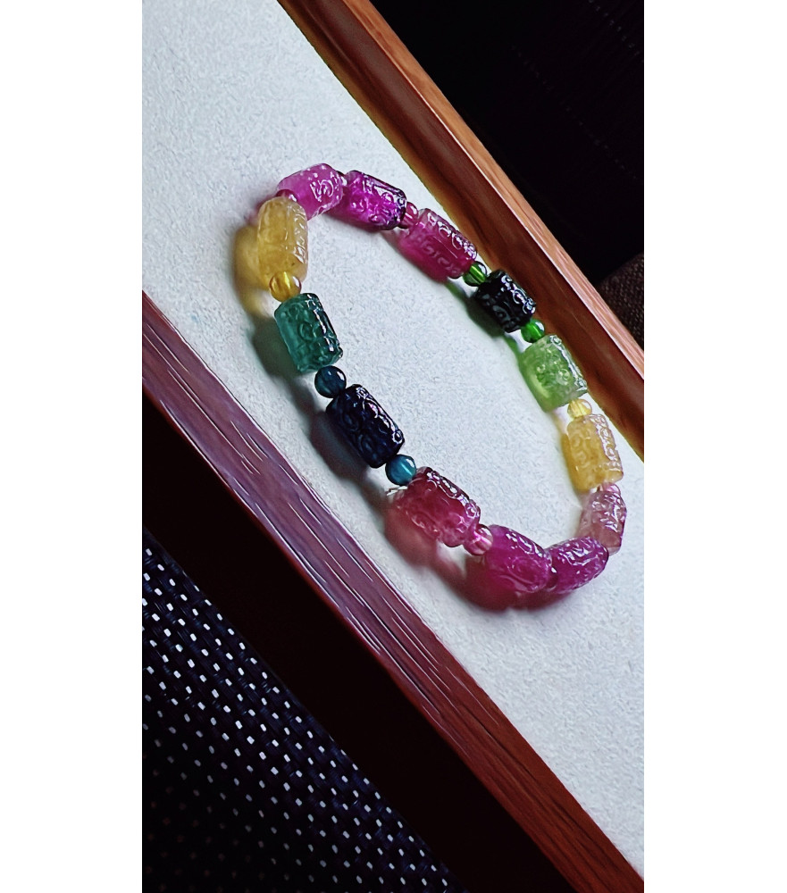 Tags: 313F13 exquisite patterned bead tourmaline bracelet, size 6.5 X10mm, weight 14.5 grams